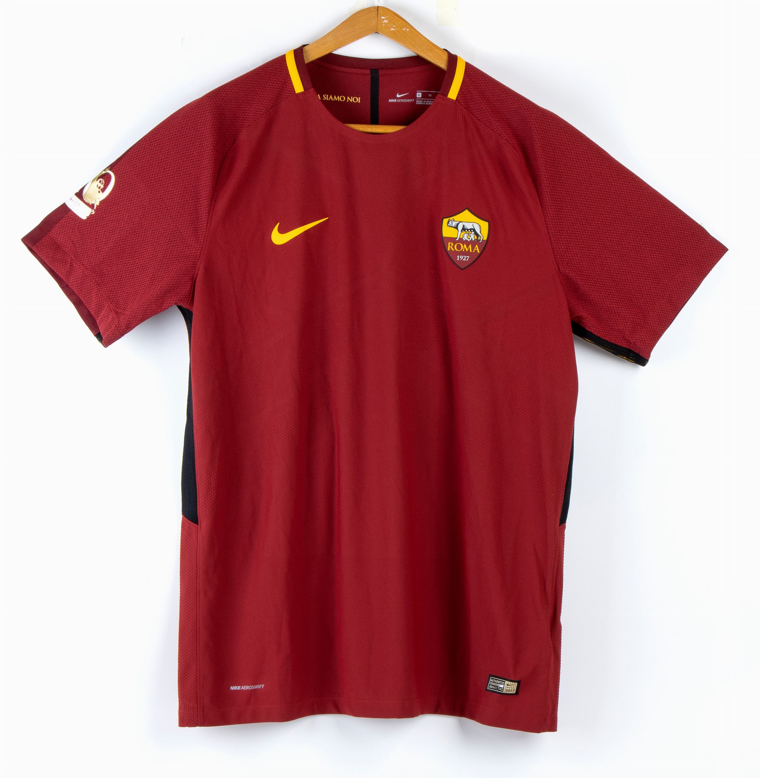 Maglia (store) della AS Roma 1927 di Francesco Totti, con autografo. Maglia della Nike. Numero 10 e nome TOTTI al retro, logo della partita di addio al calcio giocato del calciatore cucito alla manica sinistra, 'Una squadra per la Vita', stagione 2016 - Firma autografa originale a pennarello nero apposta sul numero di gara