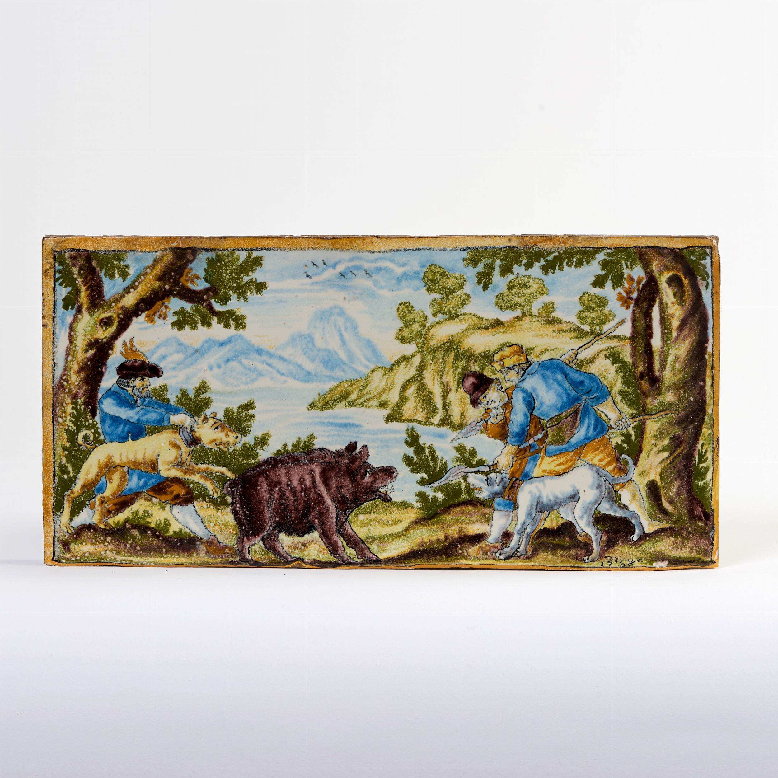 Piastrella in maiolica policroma
