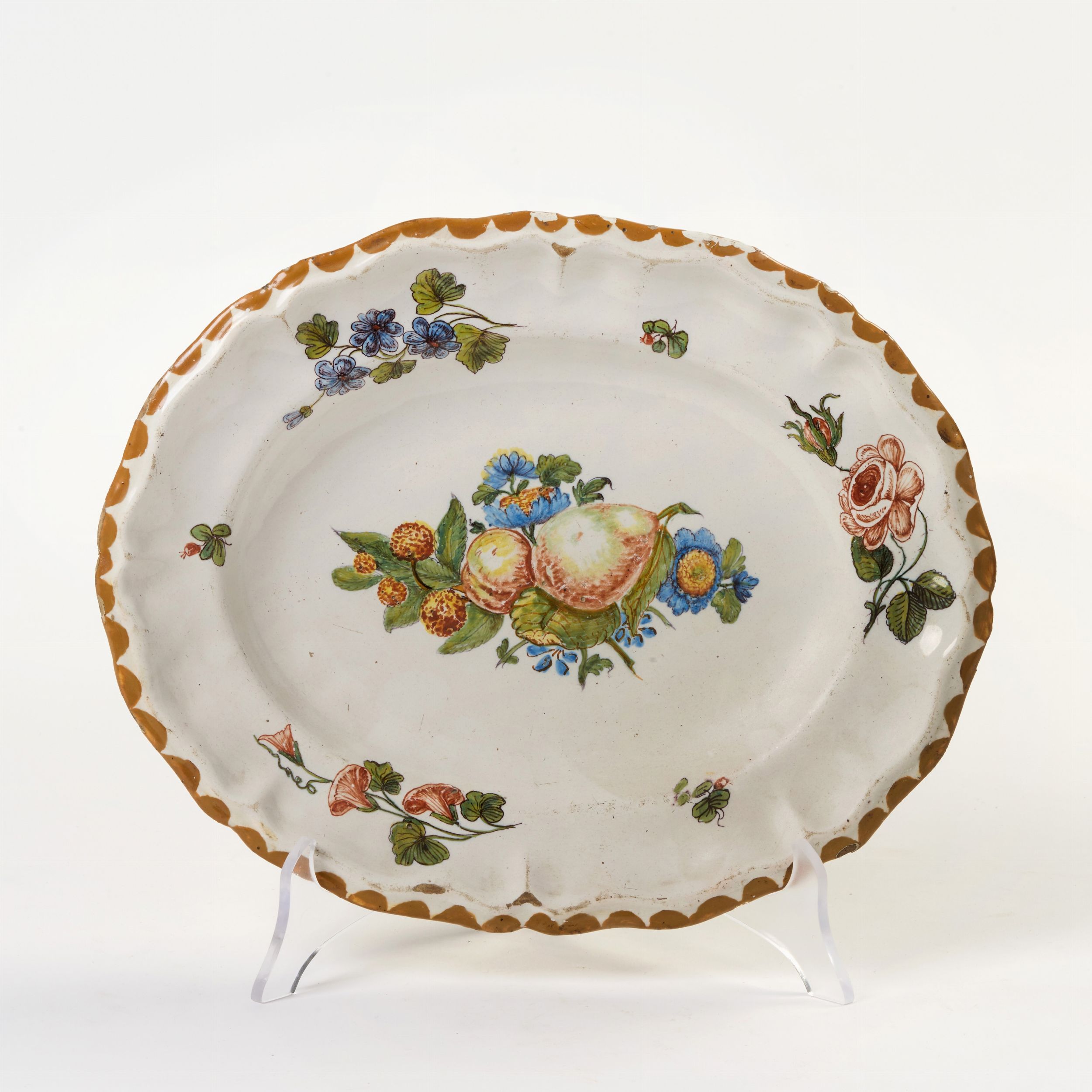 Piatto ovale in maiolica policroma