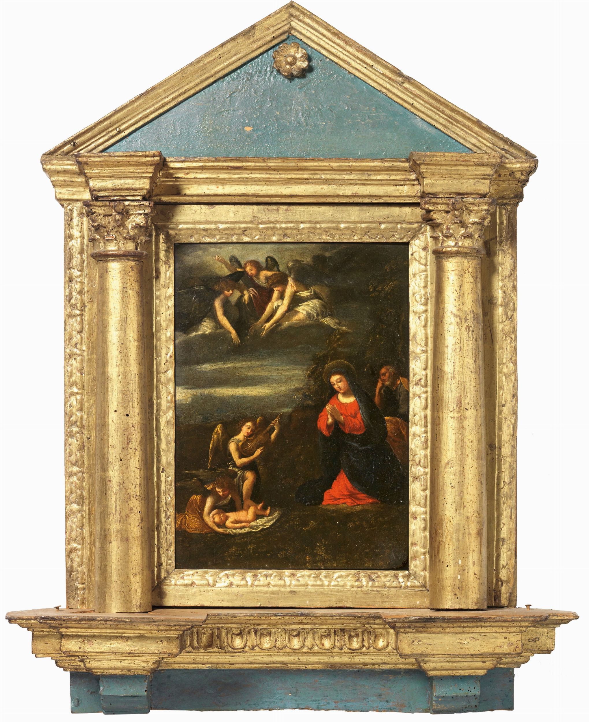 Olio su tavola, in tabernacolo in legno dorato, cm 32x25