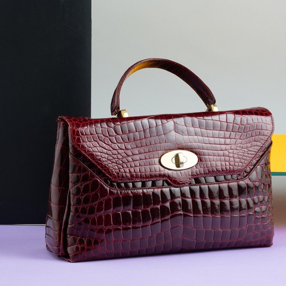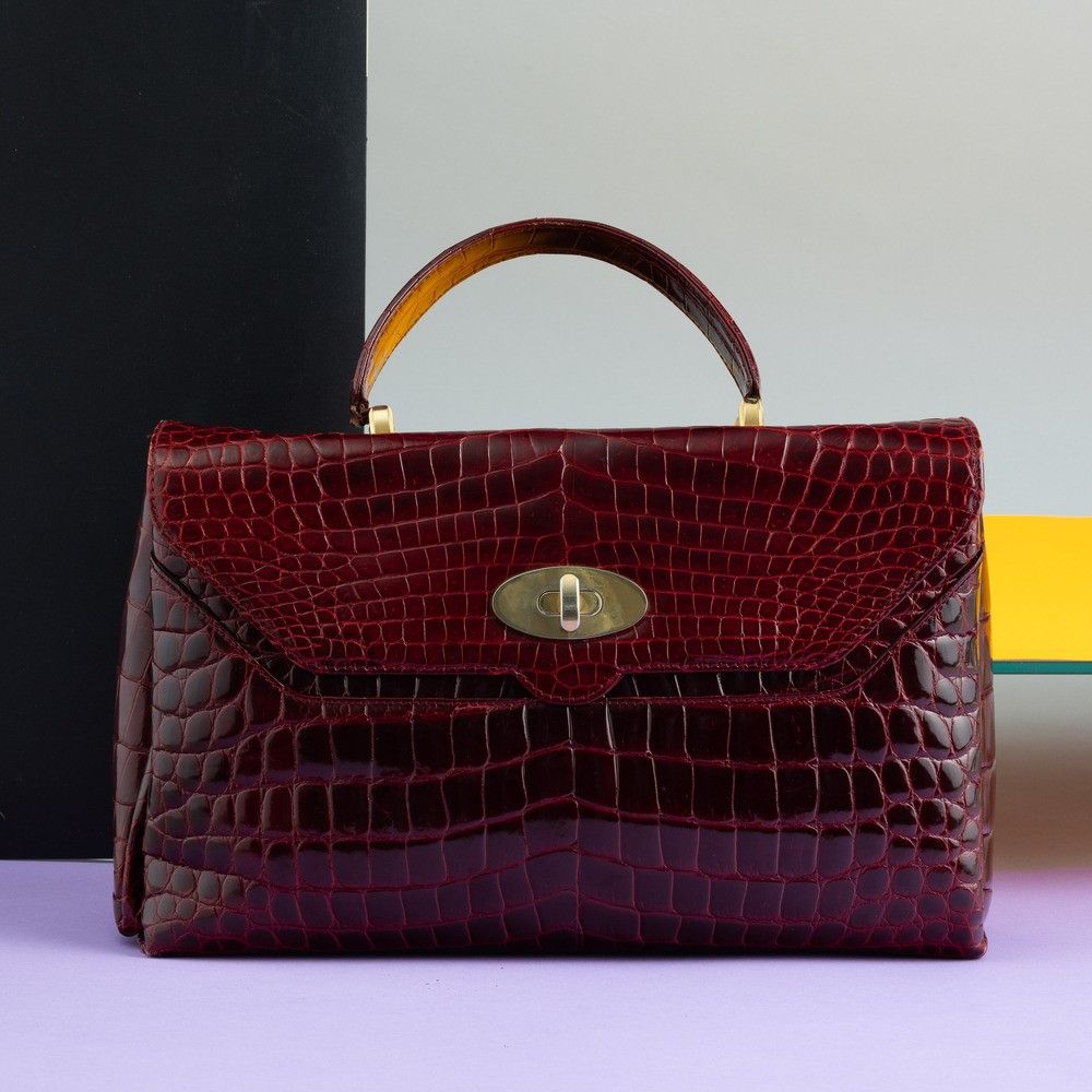 Borsa in coccodrillo bordeaux con autorizzazione Cites