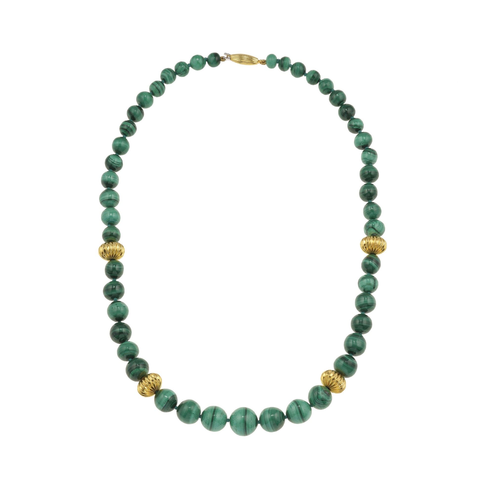 Collana con boules in malachite e inserti