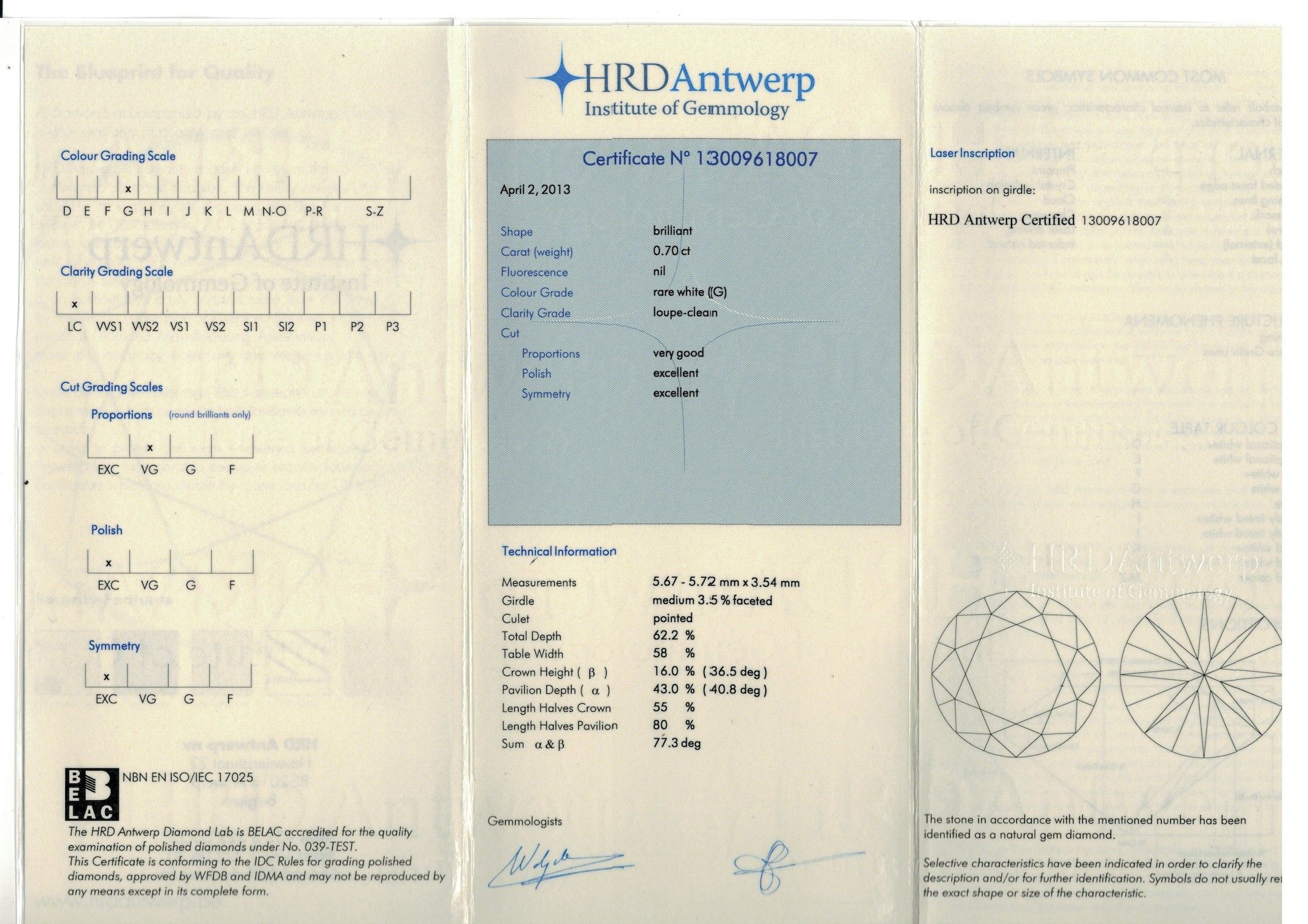 Diamante taglio rotondo a brillante di ct 0.70, colore G, caratteristiche interne [..]