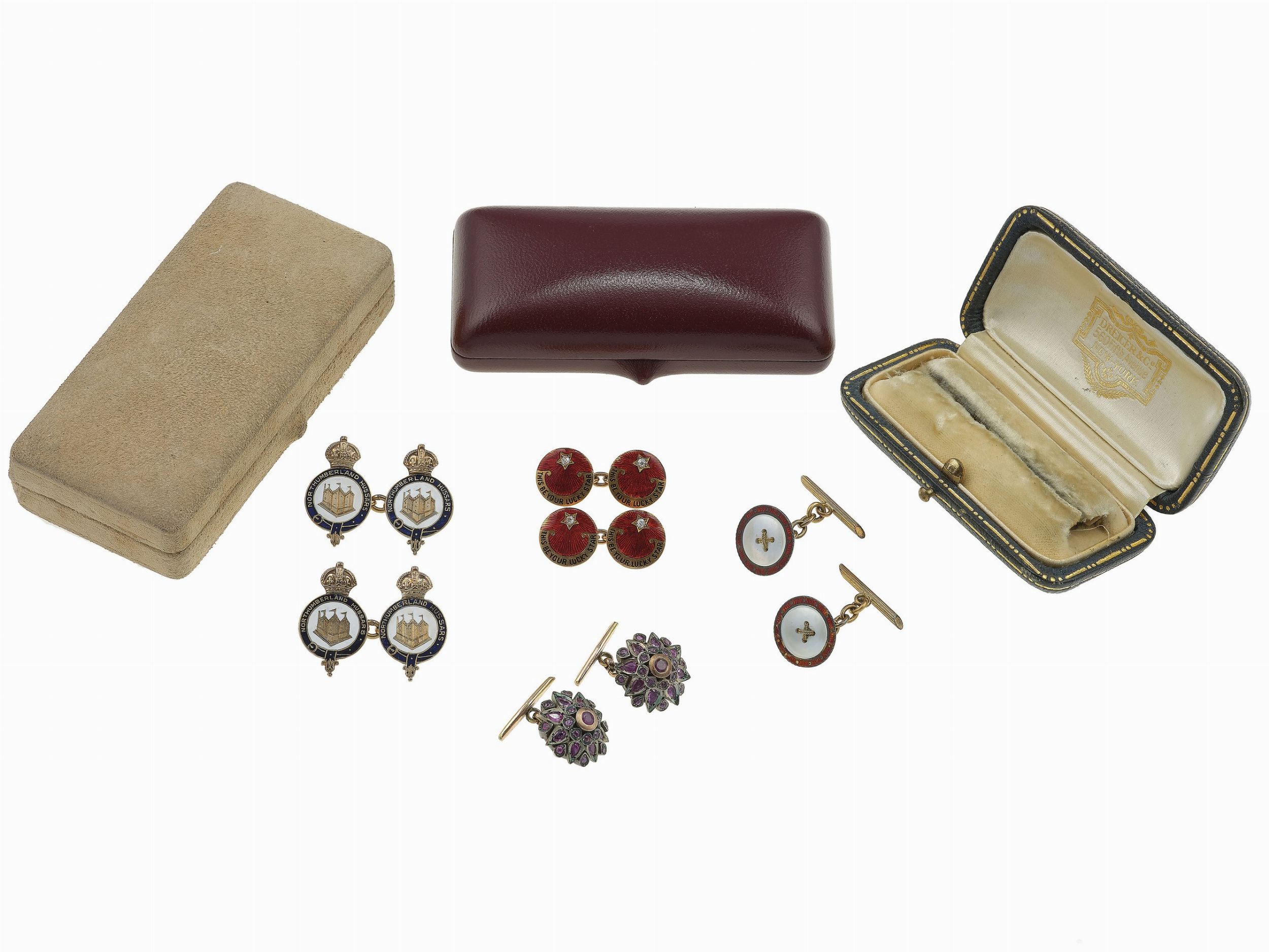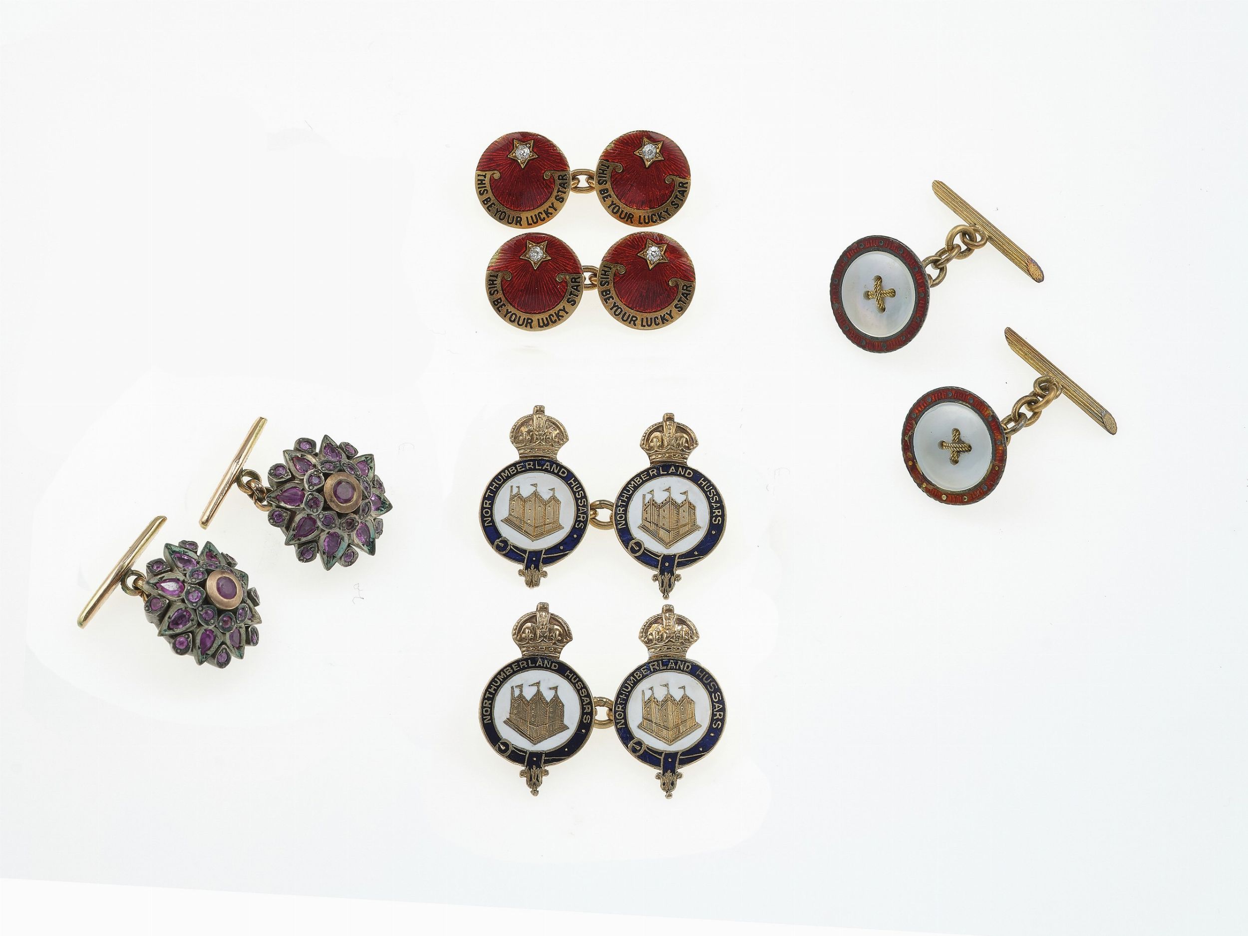 Lotto composto da quattro paia di bottoni da polso con smalti policromi e piccoli [..]