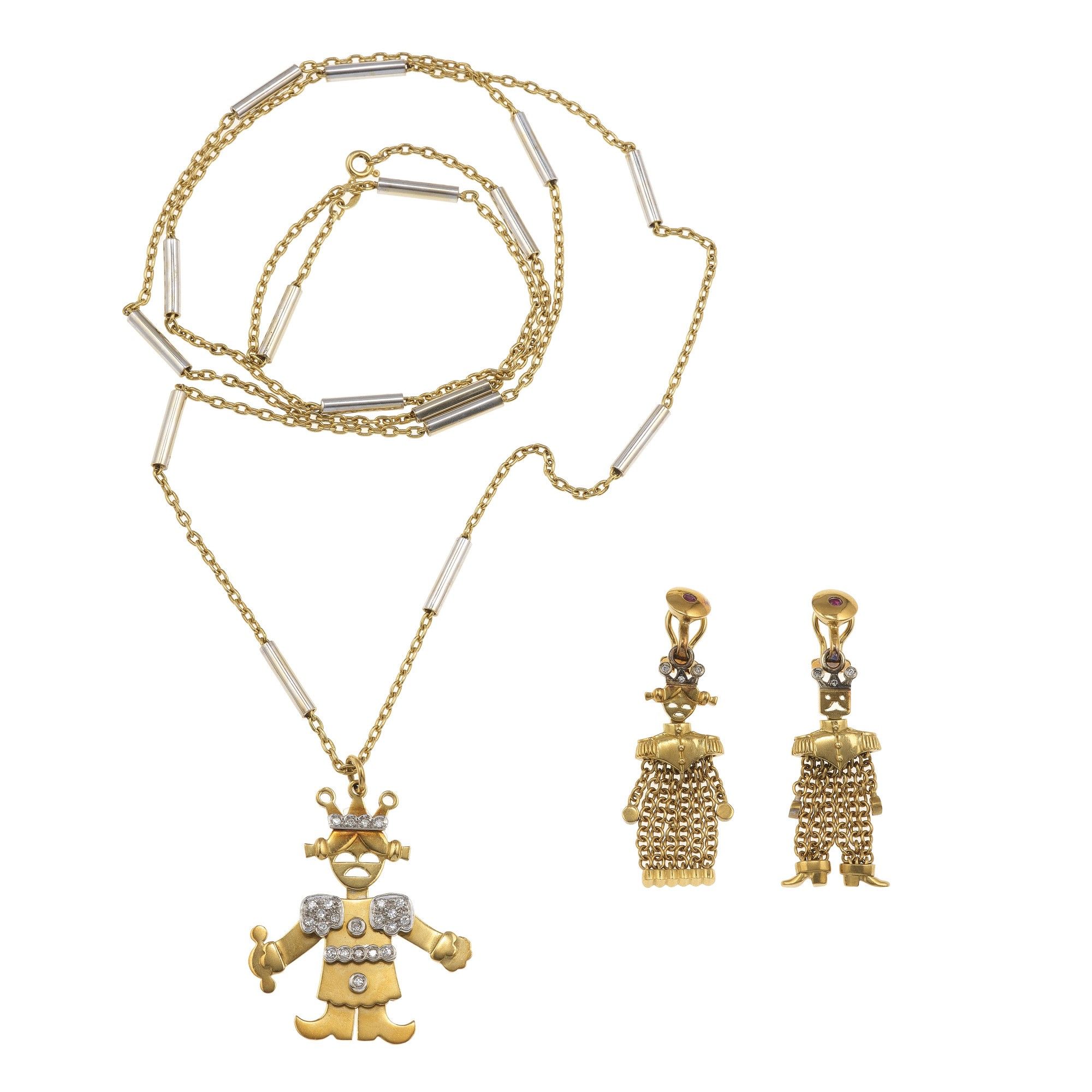 Lunga catena con pendente ed un paio di orecchini con piccoli diamanti e due piccoli [..]