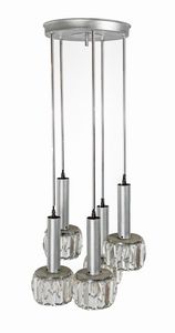 Lampadario a cinque luci da soffitto in metallo e cristallo