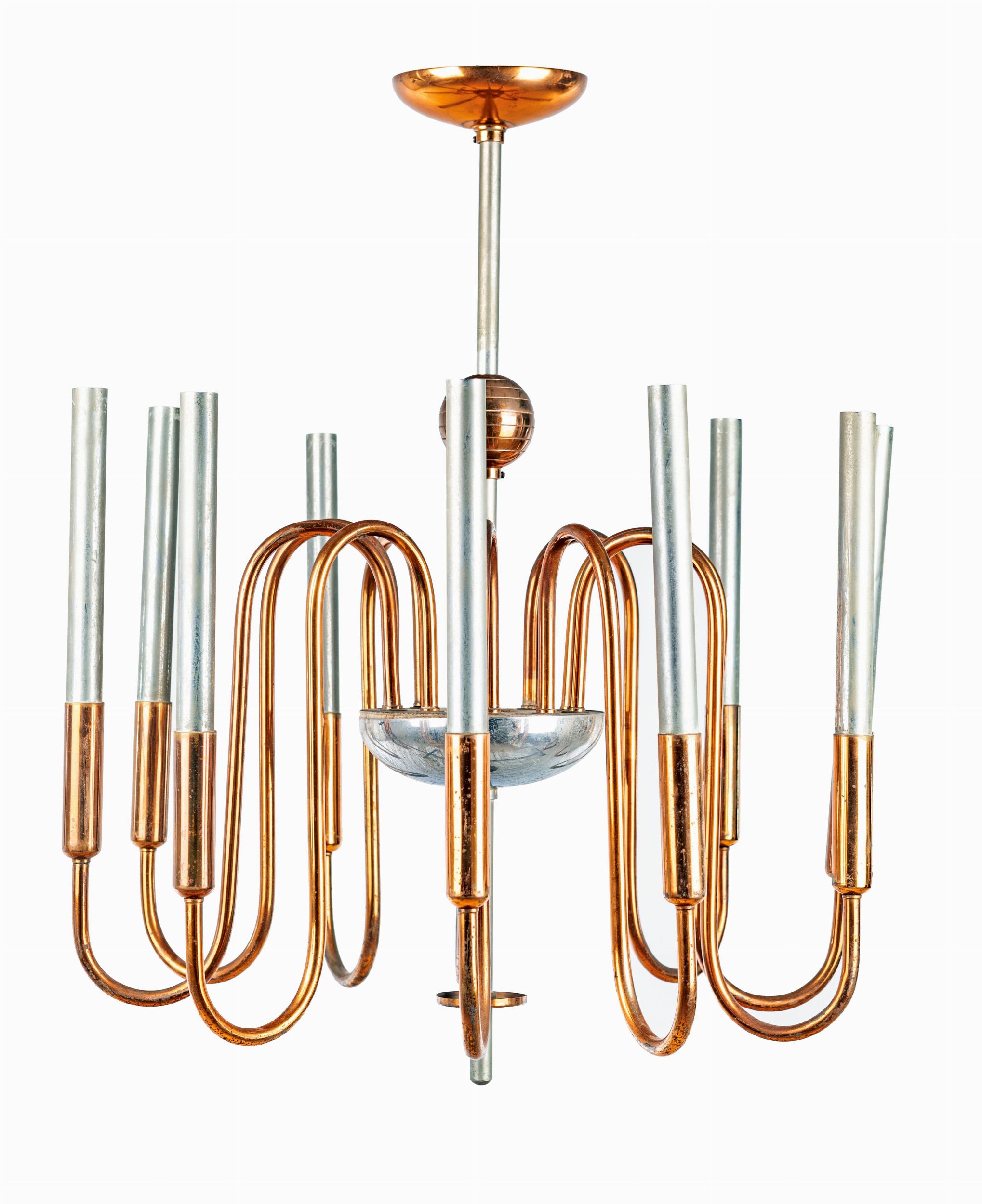 Lampadario da soffitto a dieci luci in metallo e ottone
