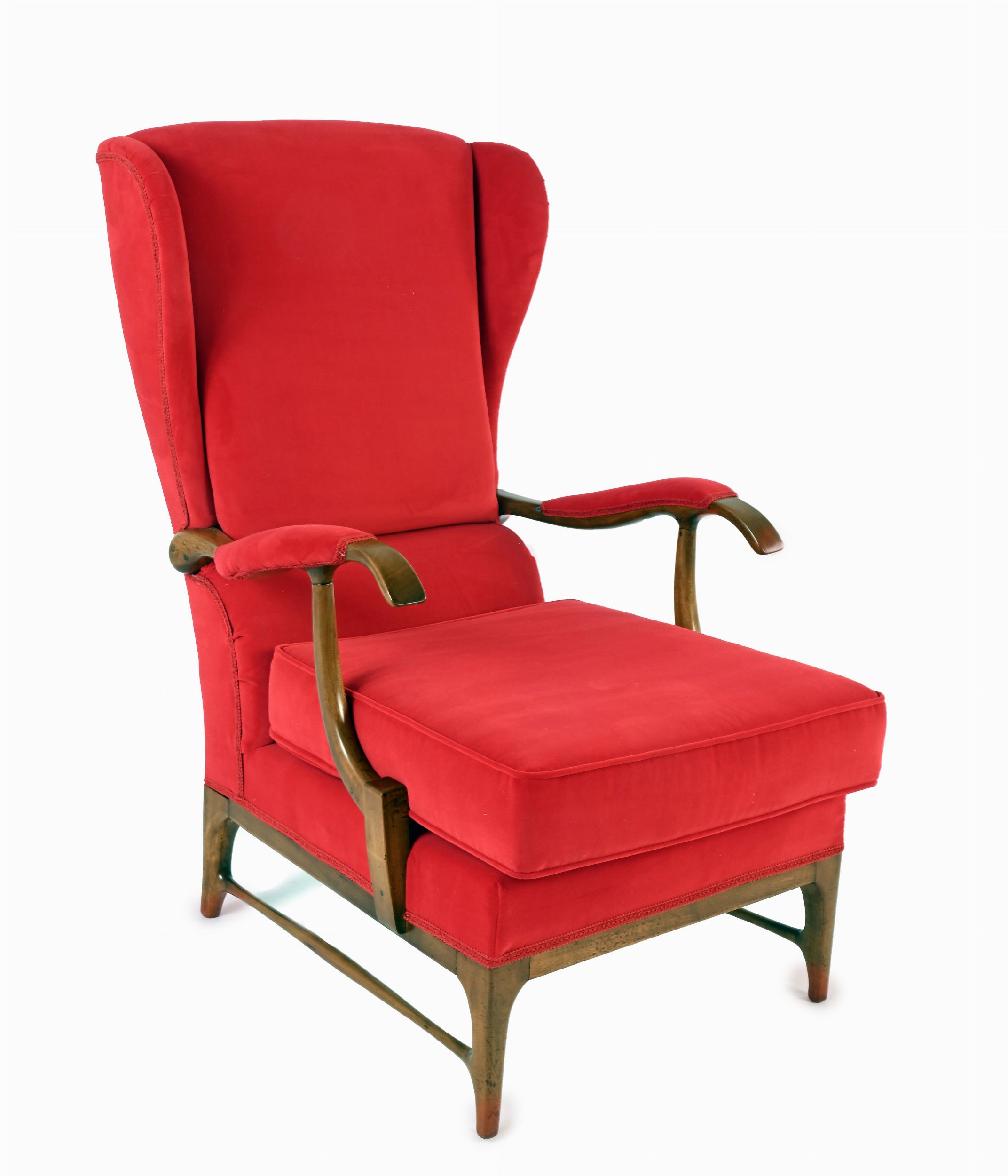 Struttura in legno e imbottitura rivestita in velluto rosso, cm h 100x60x80