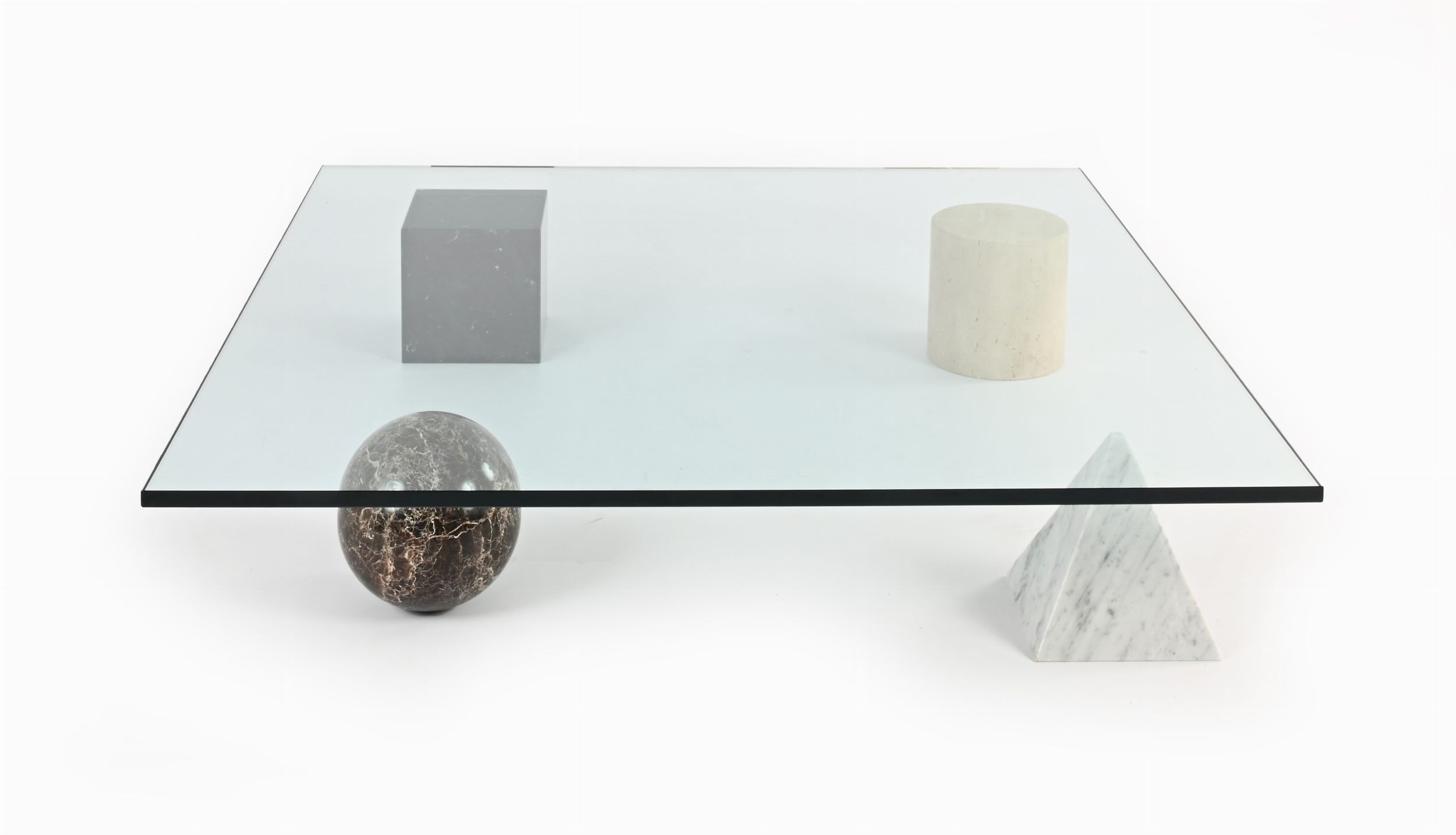 Sostegni in marmo e piano in cristallo, cm 120x120x22