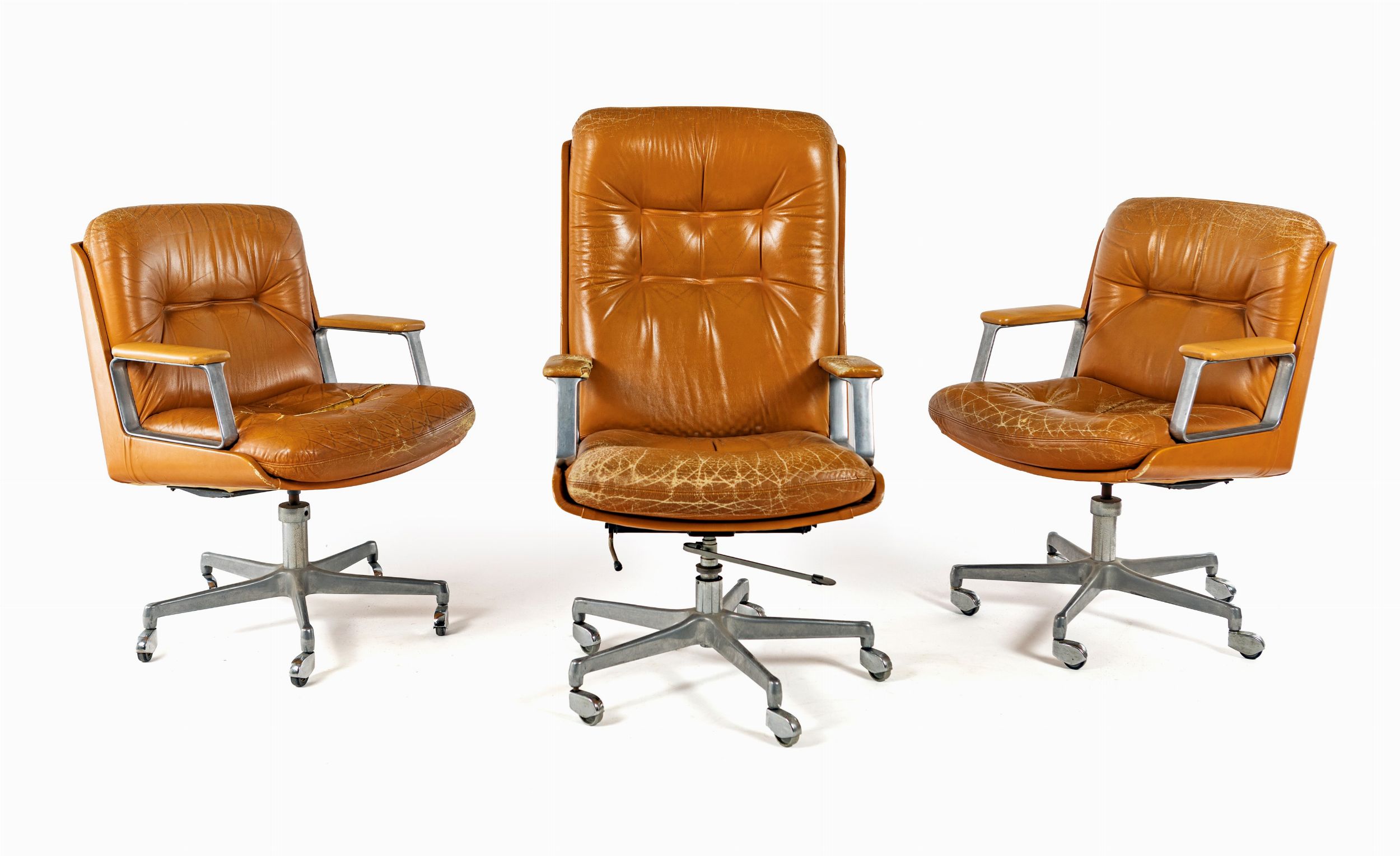 Tre poltrone da ufficio girevoli con ruote prod. Vaghi