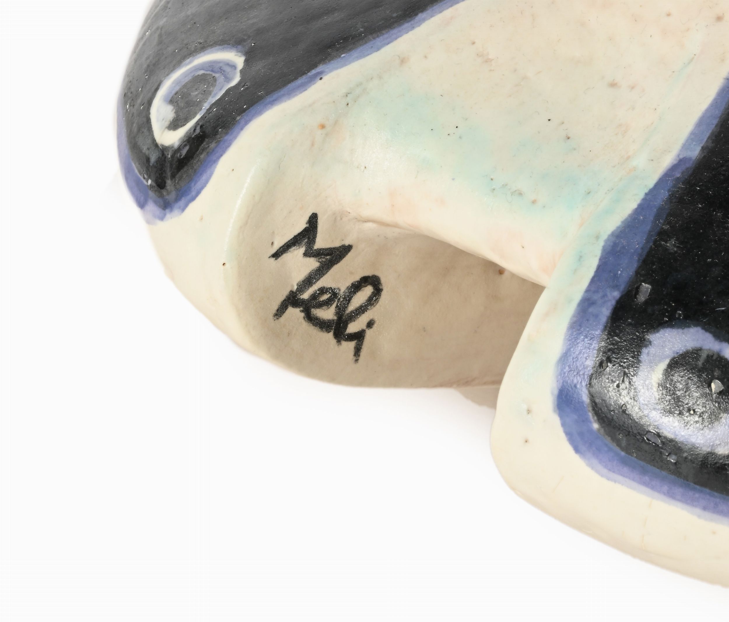 Vaso in ceramica decorato con motivi astratti nei toni del bianco e blu