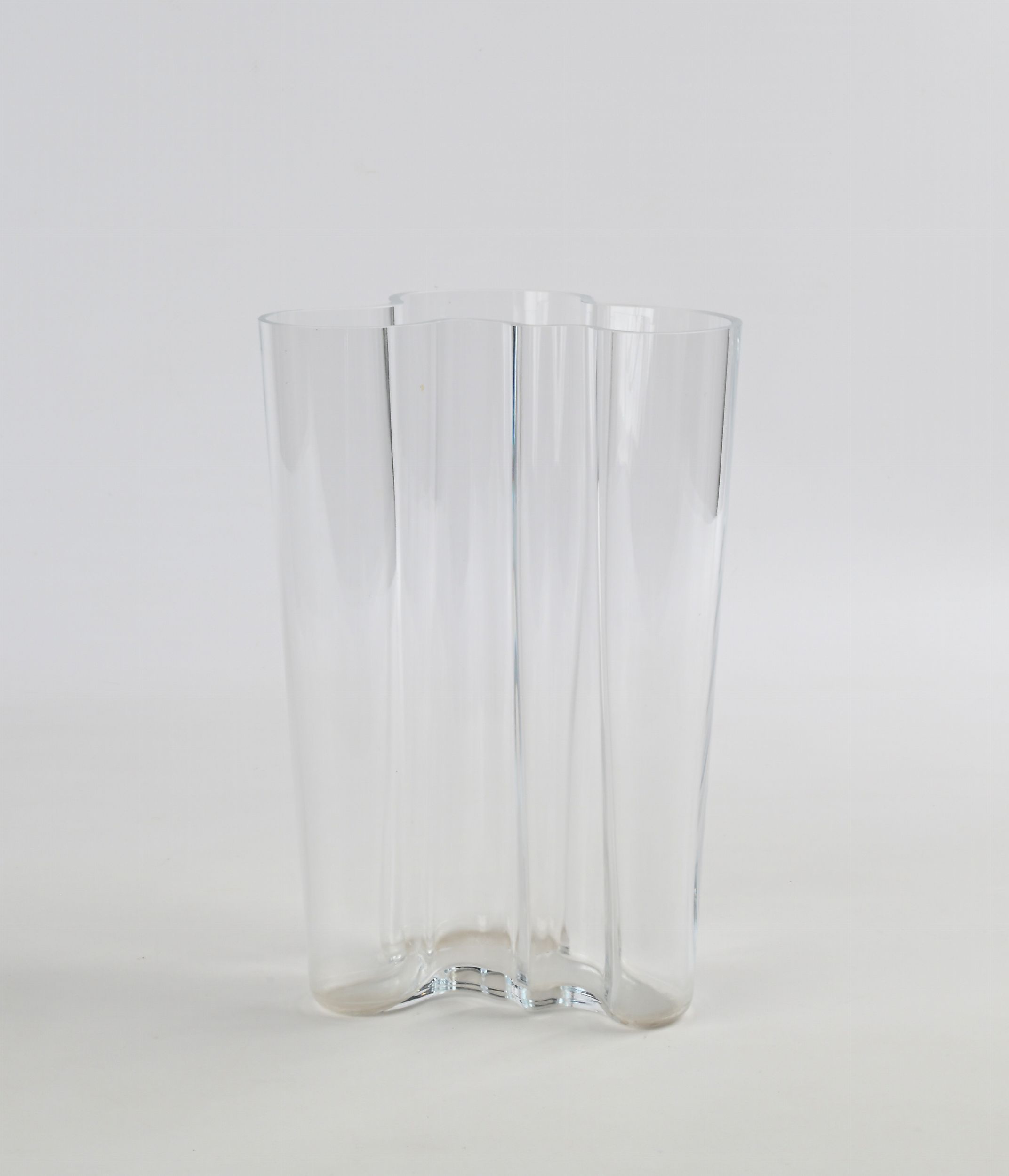 Vaso in vetro incolore soffiato di forma polilobata, prod. Littala