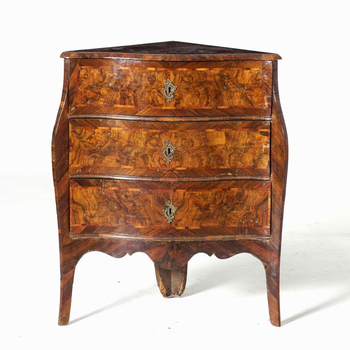 Angoliera lastronata in radica e filettata. XVIII secolo