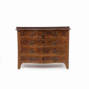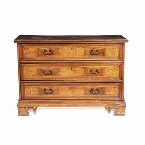 Cassettone in noce con intarsi in essenze pregiate. Italia settentrionale XVIII [..]