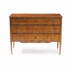 Cassettone direttorio lastronato ed intarsiato. XVIII-XIX secolo