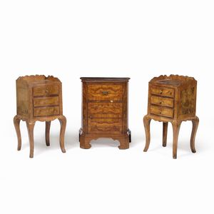 Tre comodini diversi in legno lastronato. XIX-XX secolo