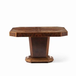 Tavolo liberty lastronato ed intagliato. XX secolo