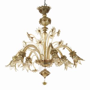 Lampadario a quattro bracci in vetro di Murano. XX secolo