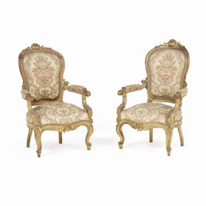 Coppia di poltrone in legno intagliato e dorato, XIX secolo