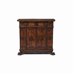 Credenza in noce con decorazione floreale intagliata, gambe ferine. Stile ‘700