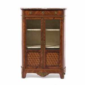 Vetrina a due ante lastronata e intarsiata. XIX secolo