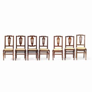 sette sedie Luigi XVI in noce. Piemonte, XVIII secolo