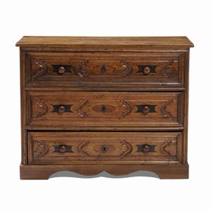 Coṃ a tre cassetti lastronato ed intarsiato, XVIII secolo