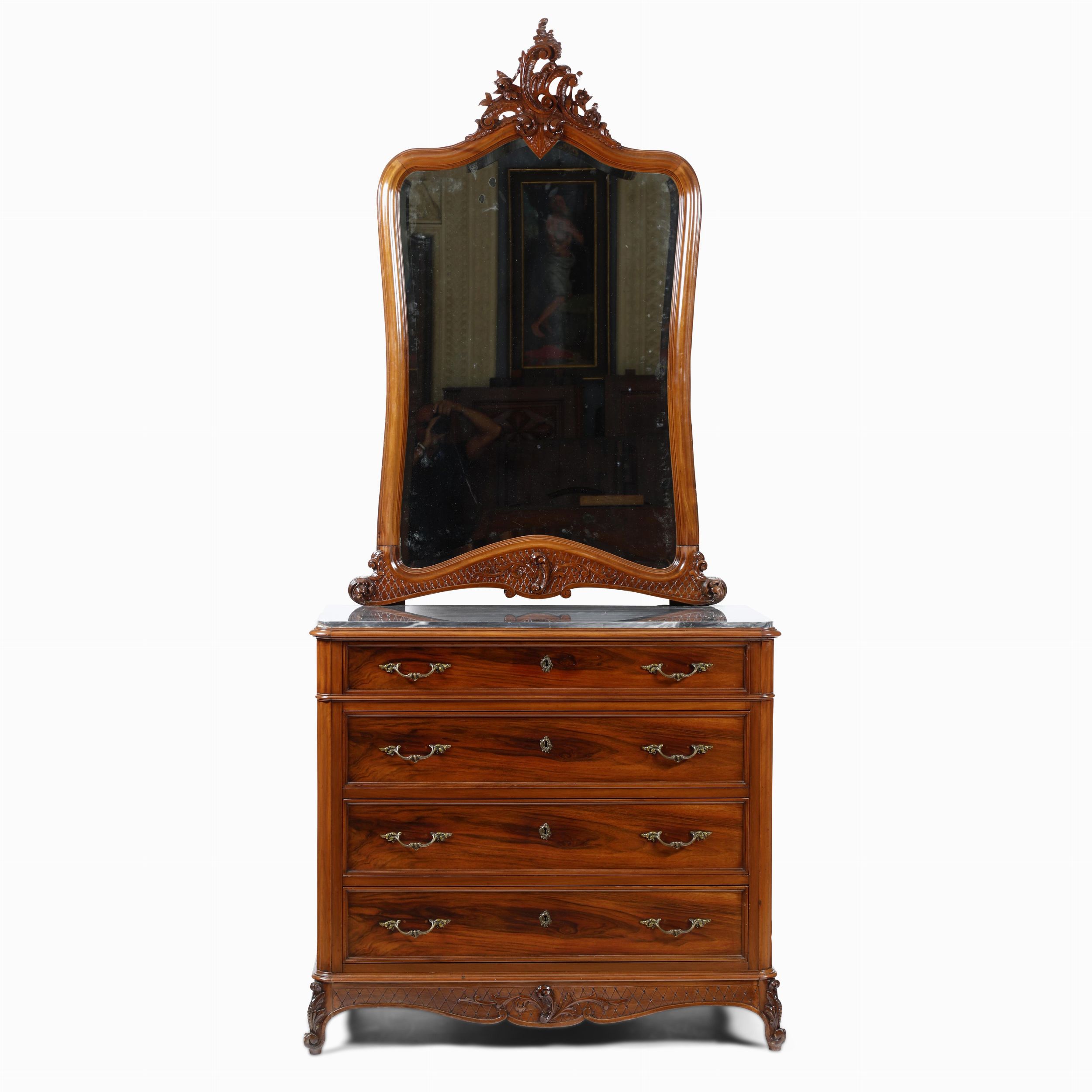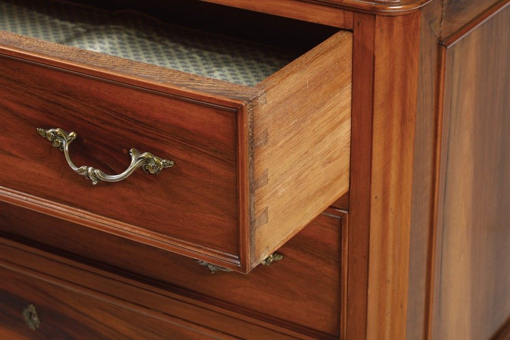Comò in legno a quattro cassetti con specchiera. XIX secolo