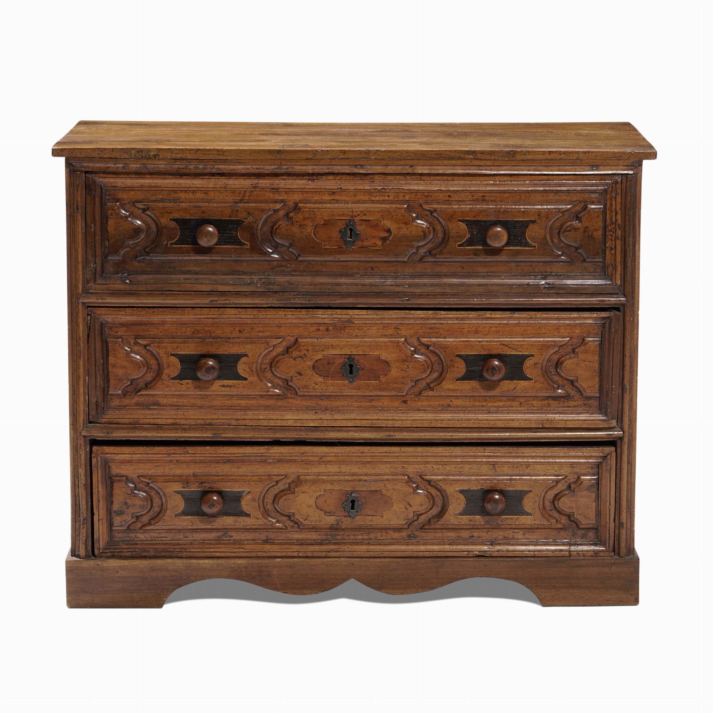 Coṃ in noce intagliato a tre cassetti