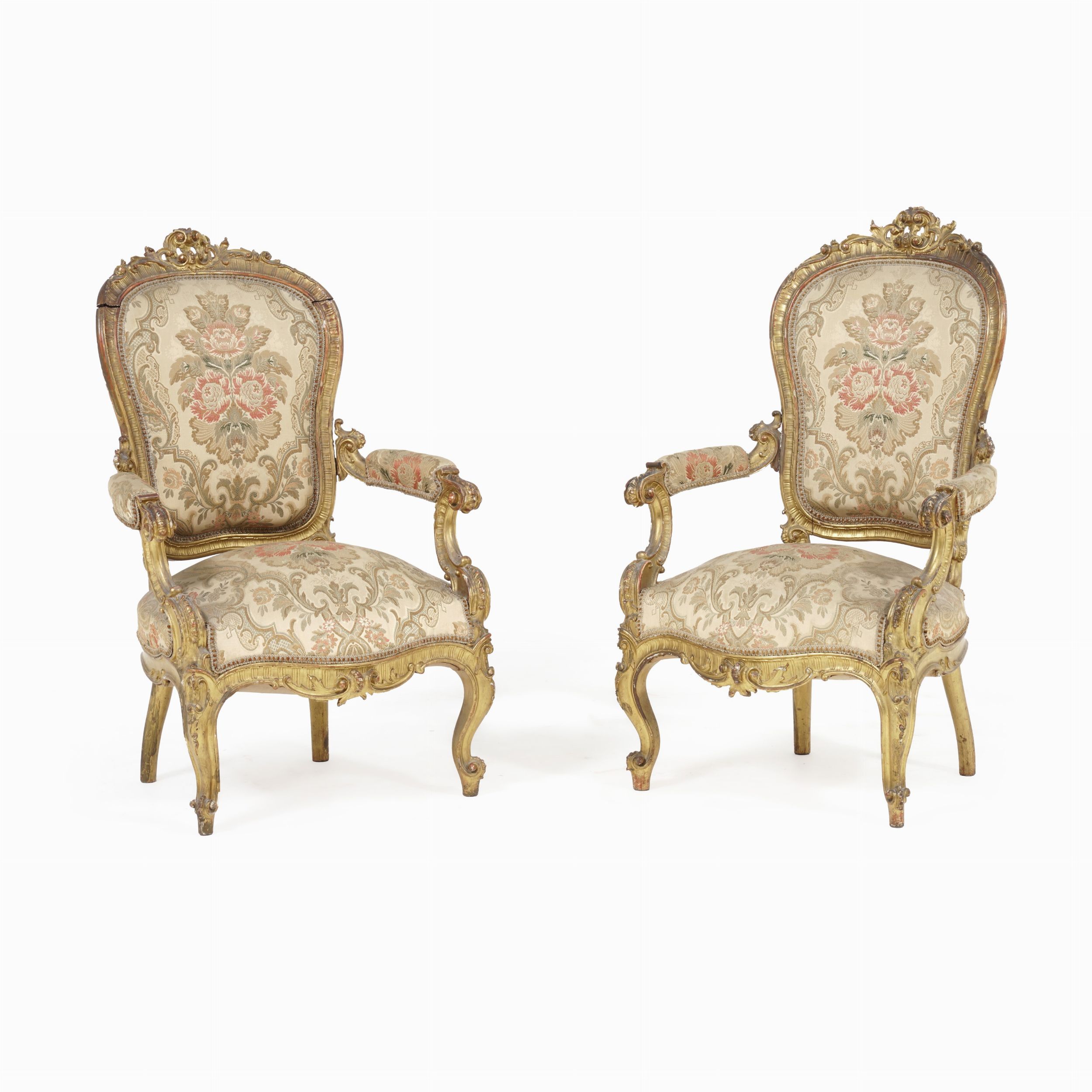 Coppia di poltrone in legno intagliato e dorato, XIX secolo