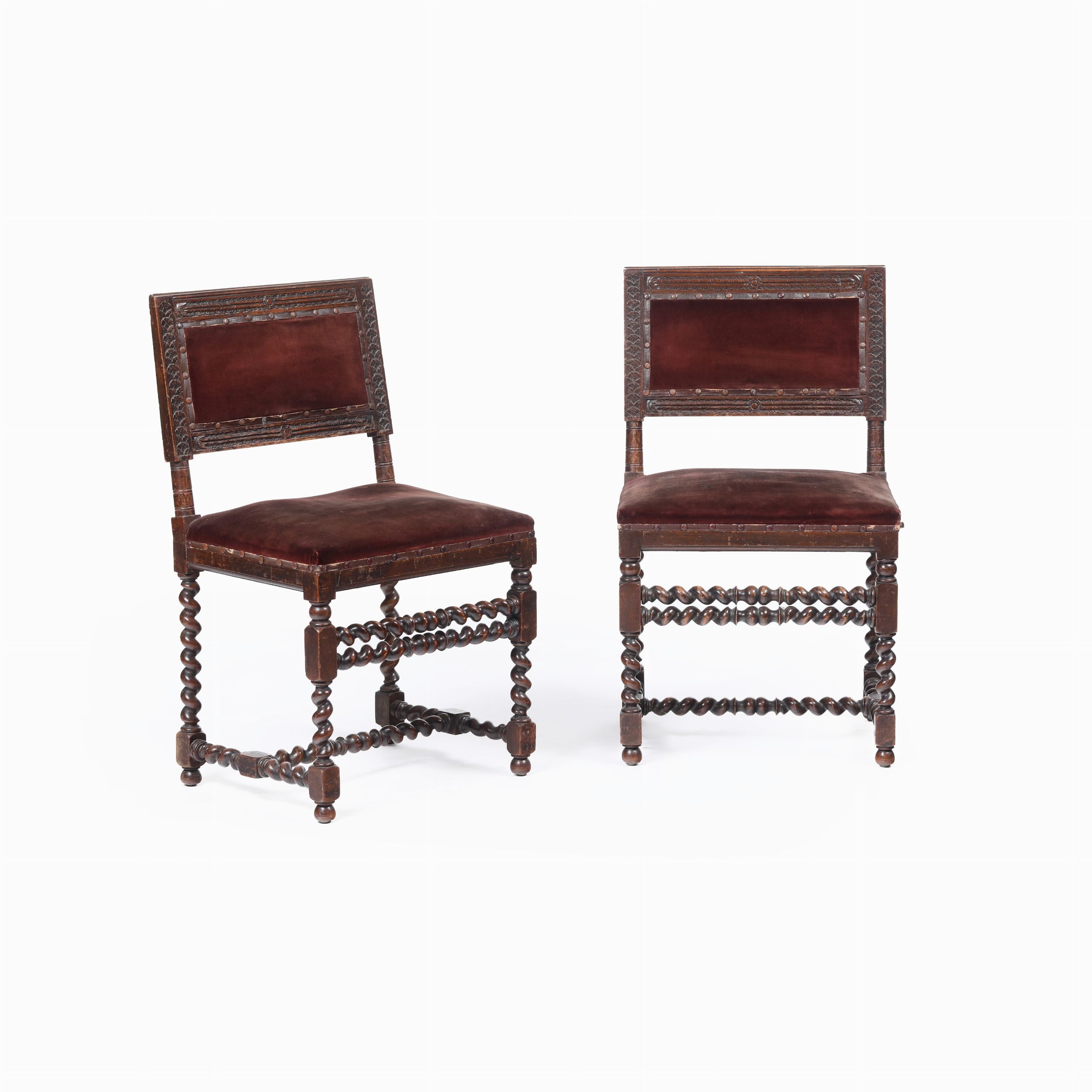 Coppia di sedie a rocchetto in legno intagliato. XVII-XVIII secolo