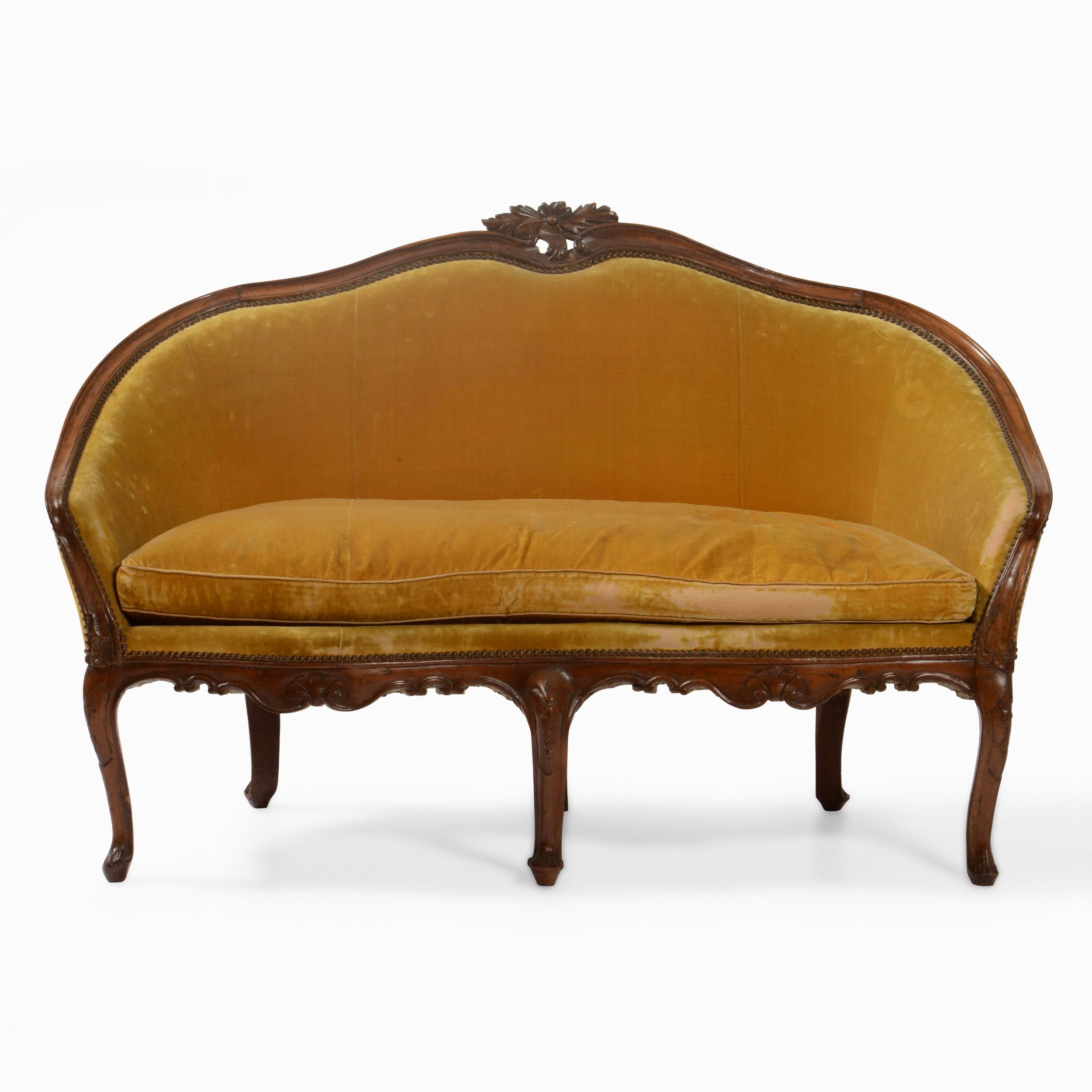 Divanetto Luigi XV in legno intagliato, Francia XVIII secolo
