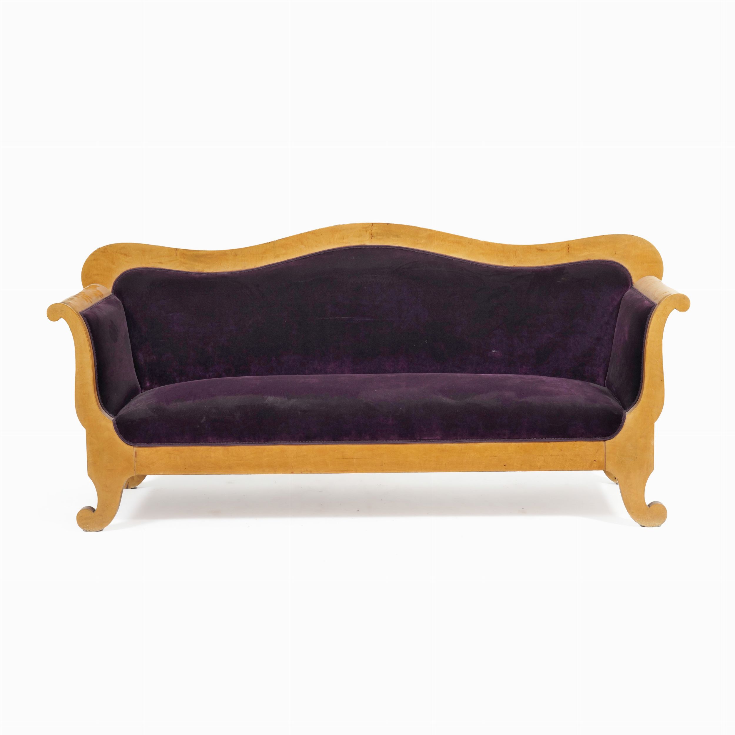 Divano Biedermeier rivestito velluto viola. XIX secolo