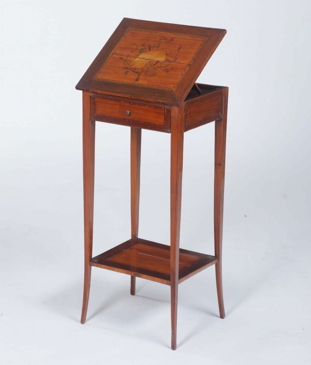 Guéridon lastronato ed intarsiato in varie essenze, Francia, stile Luigi XVI, XIX [..]