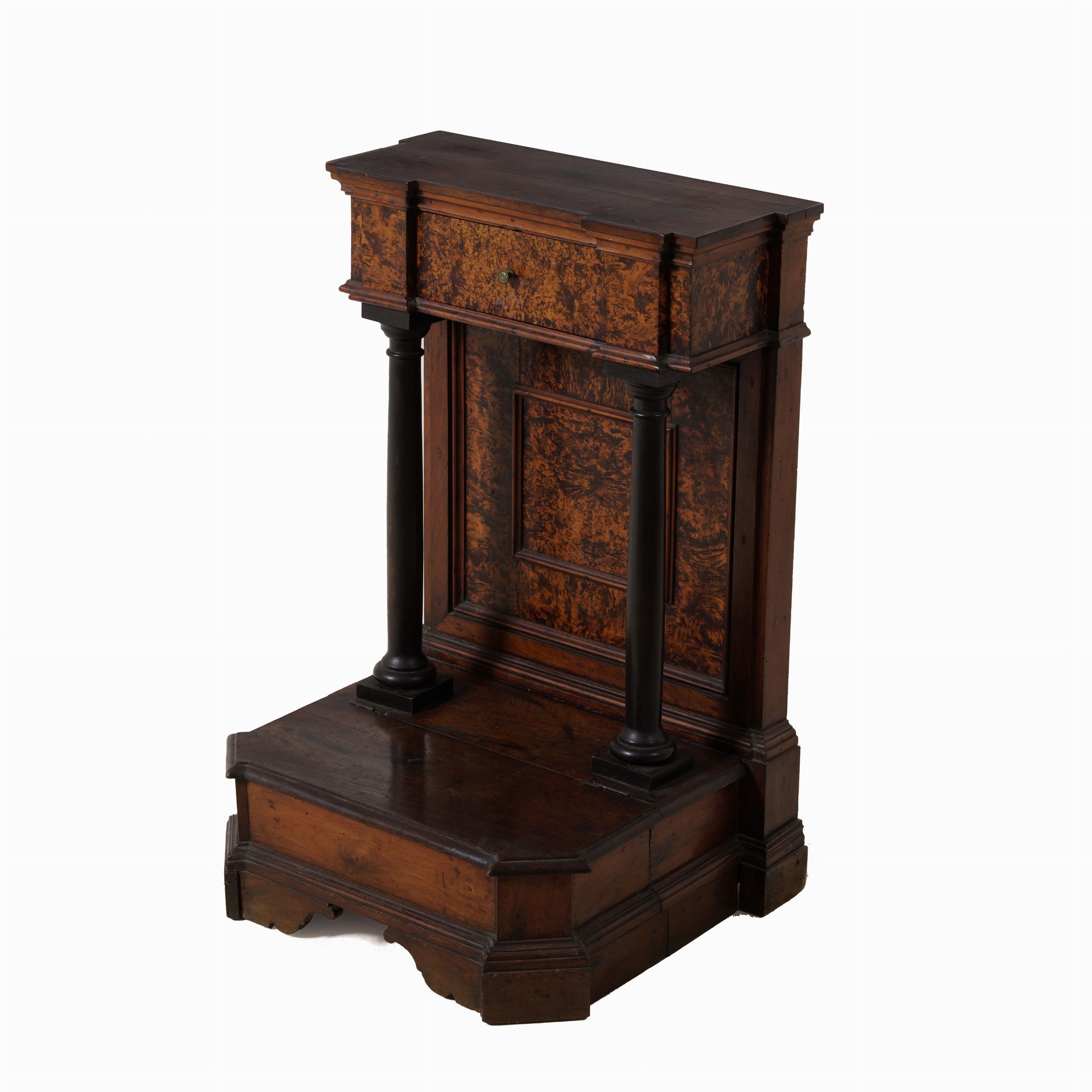 Inginocchiatoio lastronato in radica, XVII-XVIII secolo