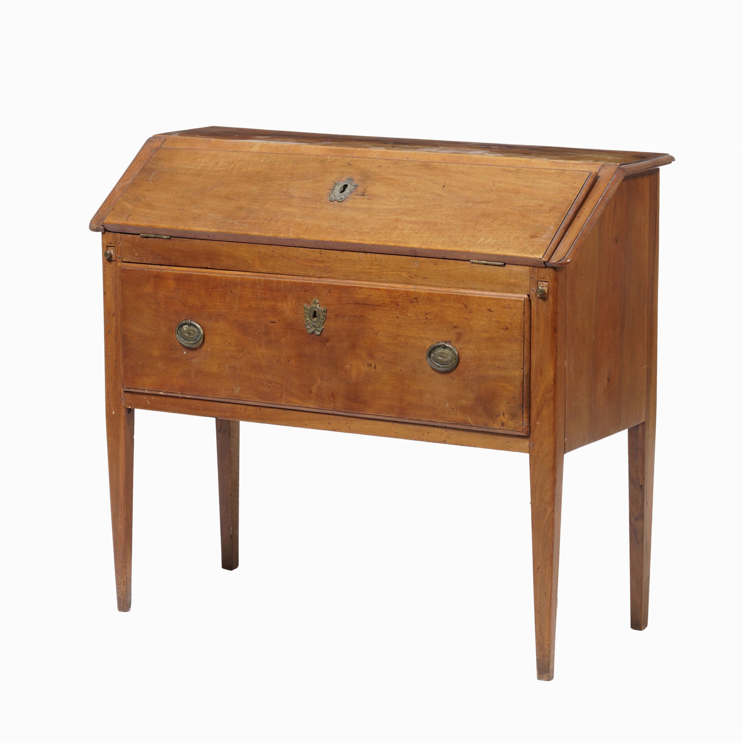 Piccola ribalta in noce a un cassetto. XIX secolo