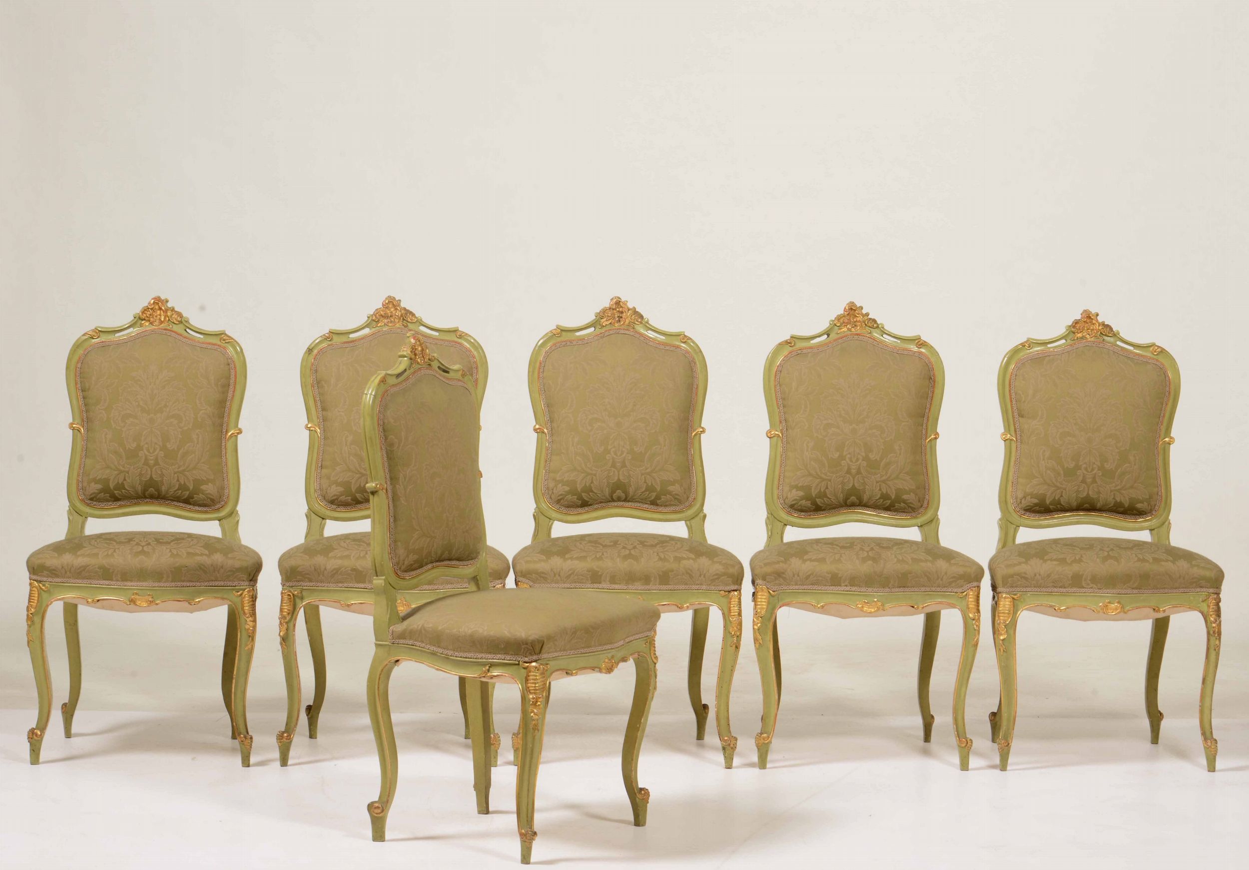 Salotto in legno intagliato, dipinto e dorato