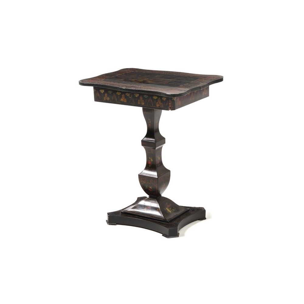 Tavolino in legno ebanizzato e dipinto in policromia, XIX-XX secolo