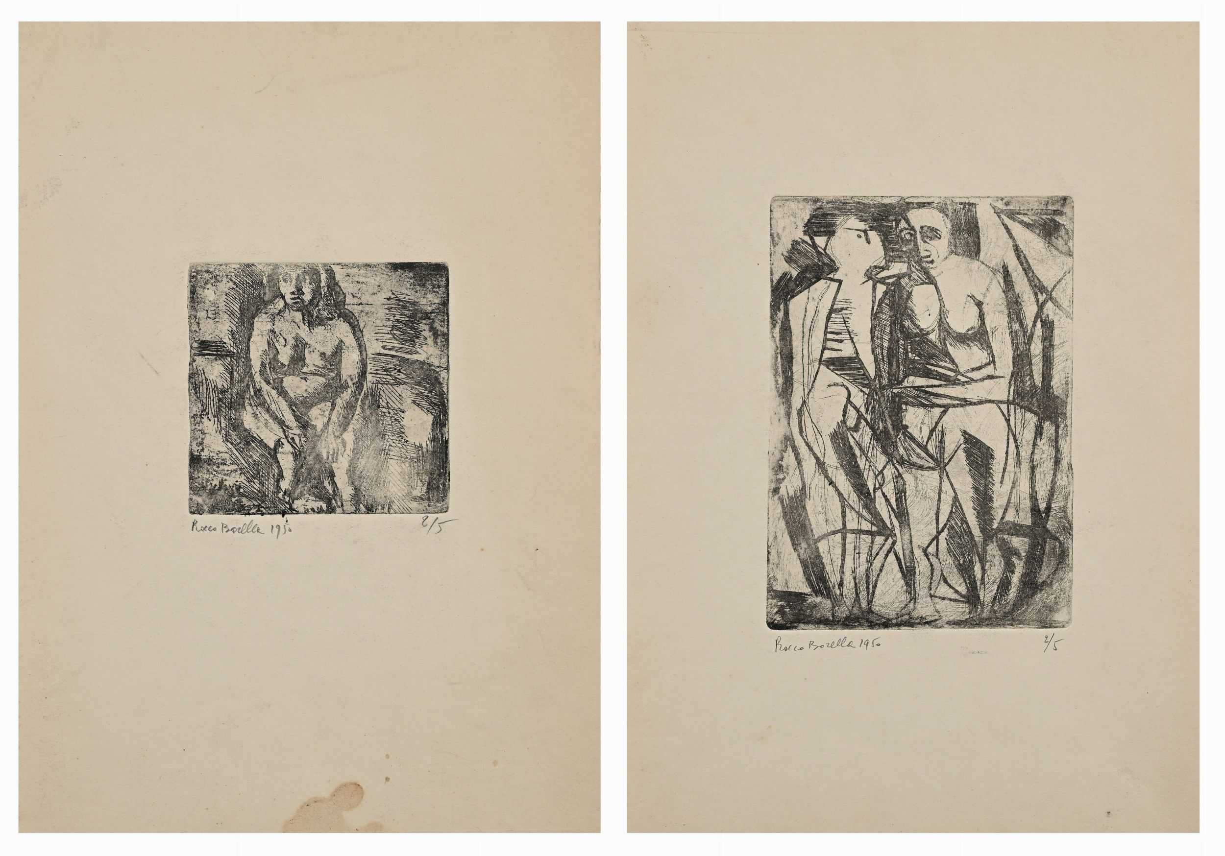 1950 Ognuna misura cm 35x25. Entrambe sono firmate, datate e numerazione 'Rocco Borella 1950, 2/5'
