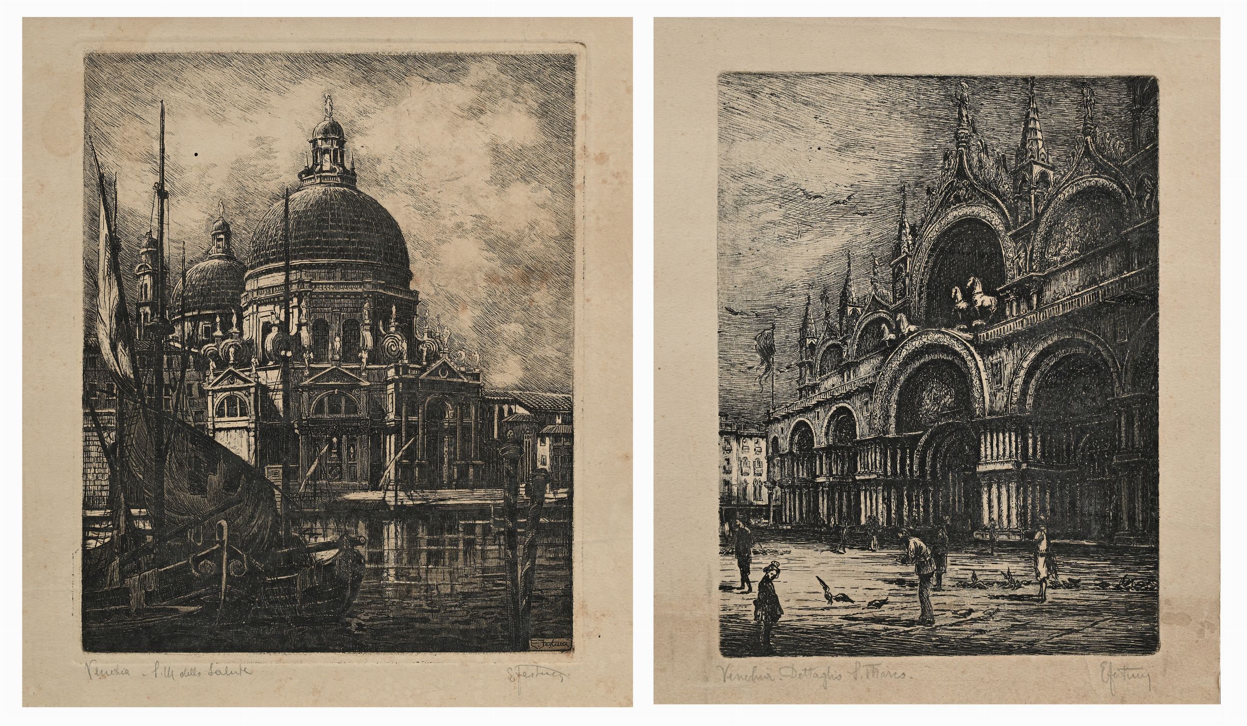 Due incisioni raffiguranti Venezia (Dettaglio di San Marco e Santa Maria della S [..]