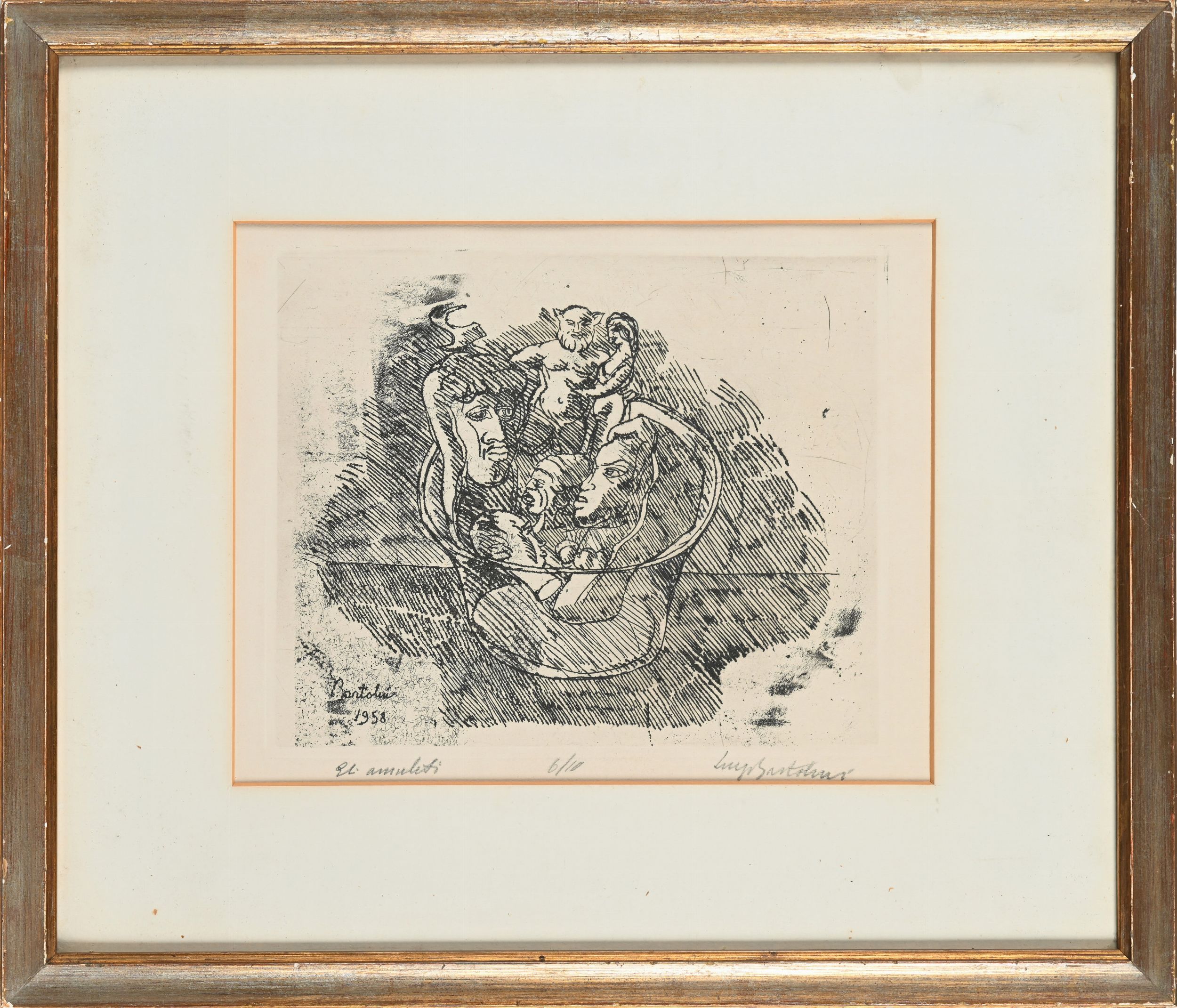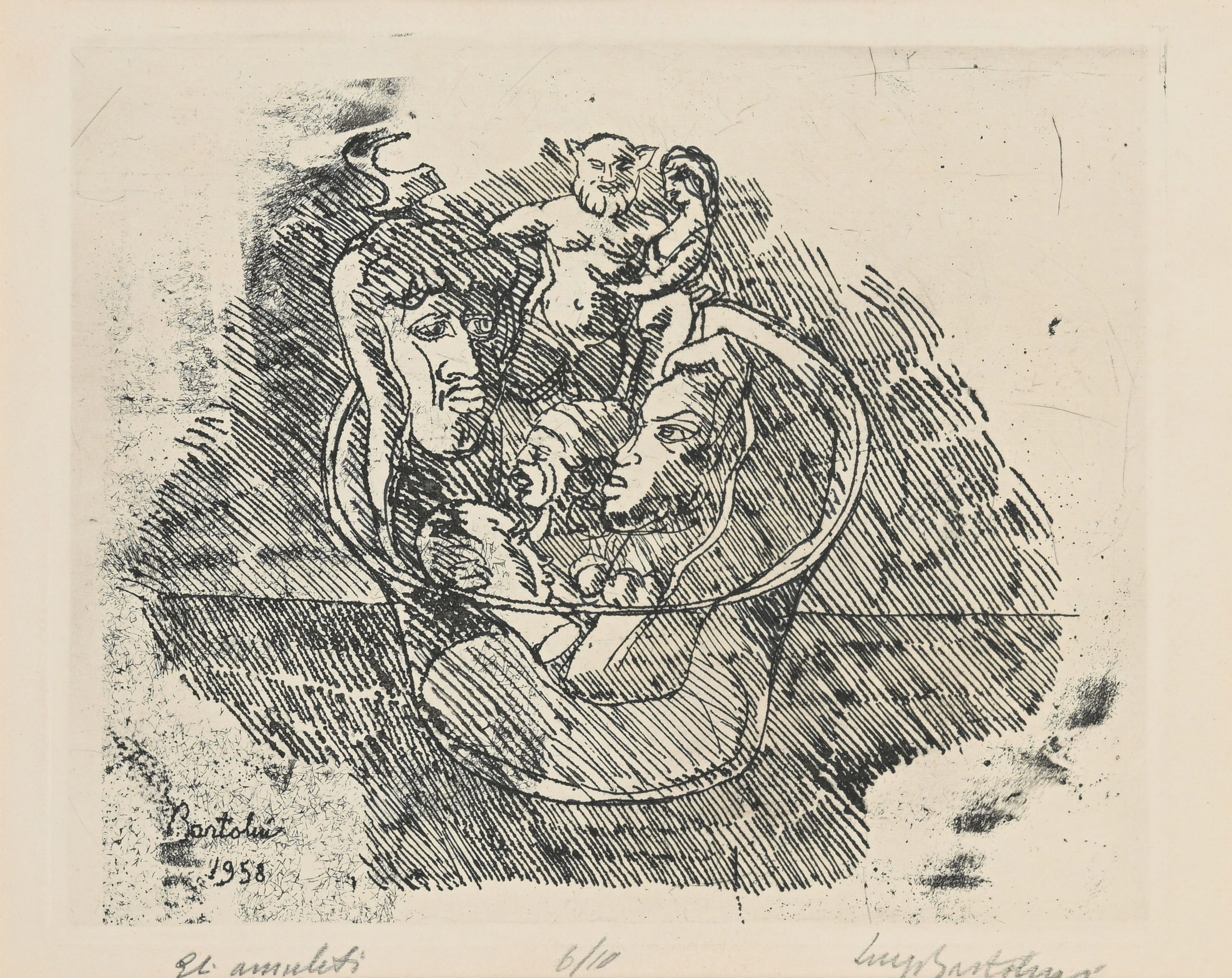 1958 Firma, numerazione e firma 'Luigi Bartolini 6/10'. Firma e data in lastra. Al verso reca etichetta della Galleria d'Arte Il Vertice, Roma