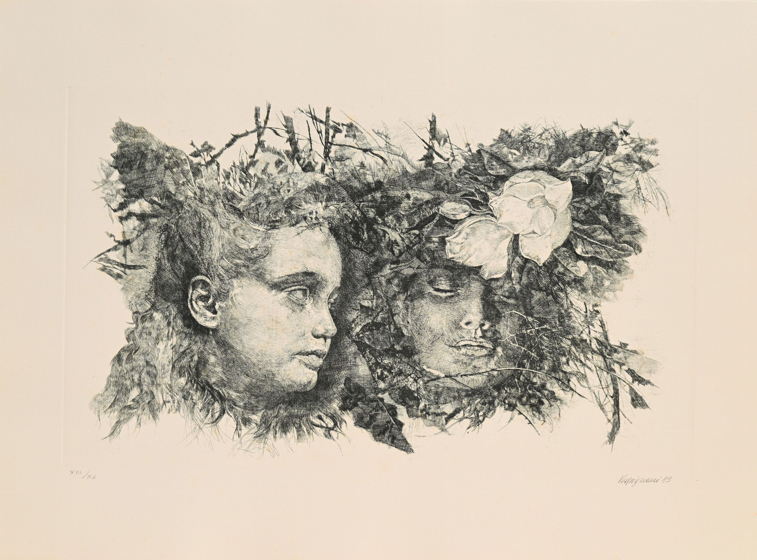 1982 15 Incisioni di Vespignani, Poesie e Prose di Giacomo Leopardi, entro cartellina originale. Ogni incisione misura cm 60x45 ed è firmata, numerata e datata 'Vespignani 82, XIII/XS'