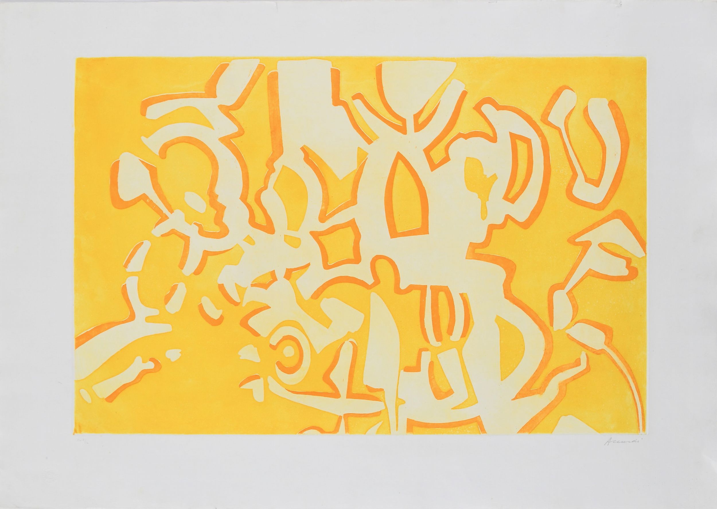 Firma e numerazione 'Accardi XLIV/L'. Timbro a secco dello stampatore. Al verso timbro della Grafica d'Arte Lombardi