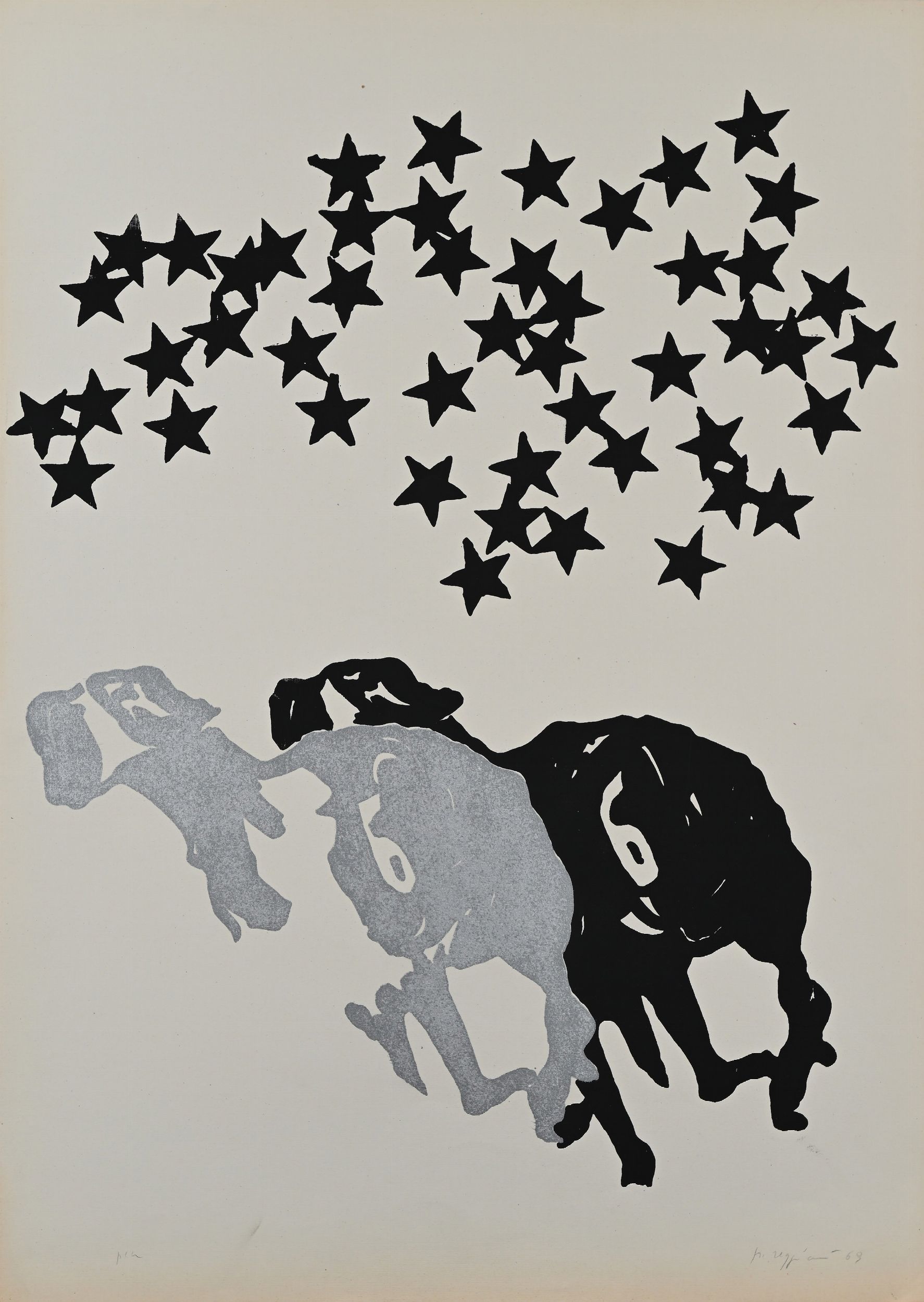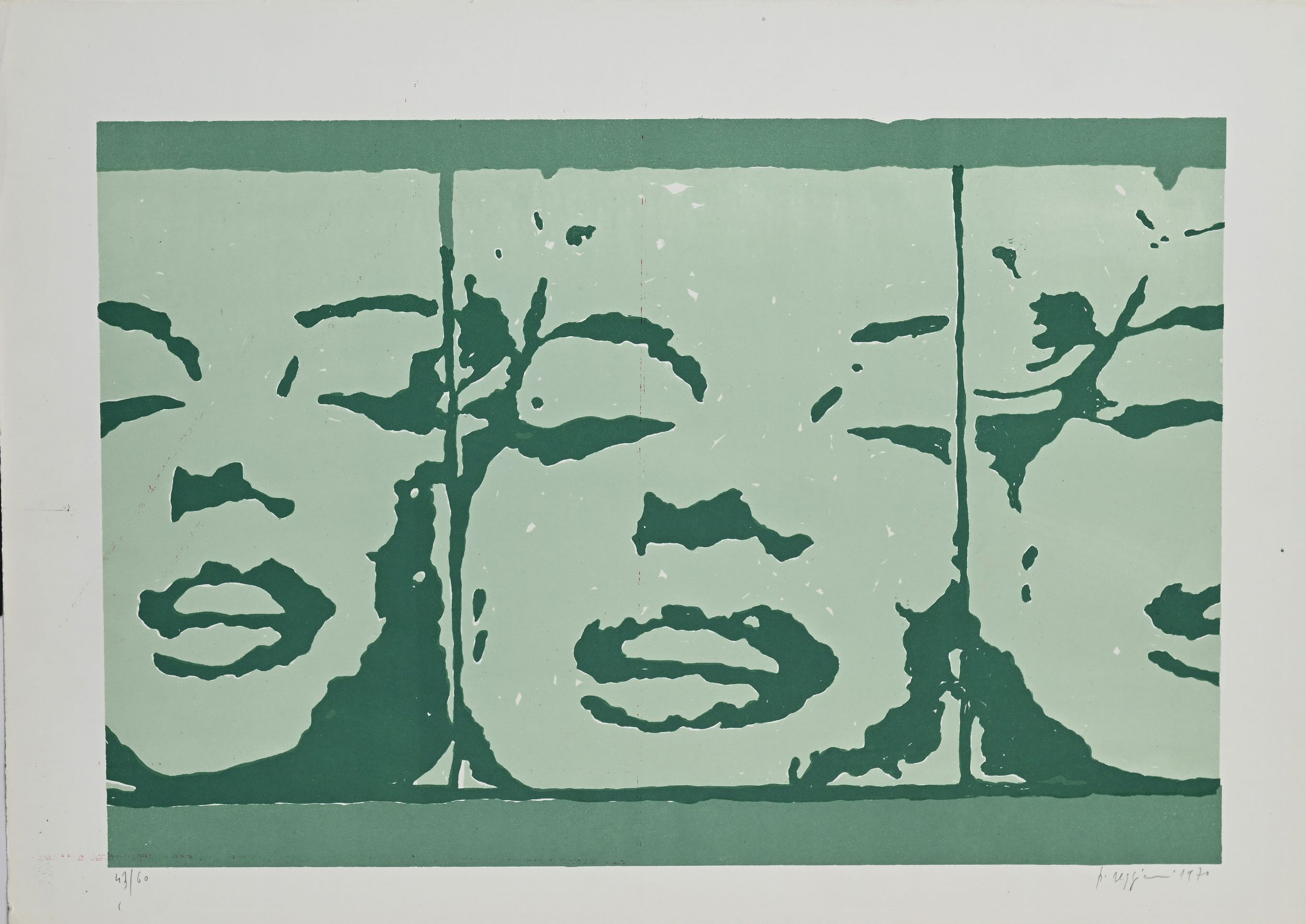 1) Senza titolo, 1970, cm 50x70, firma data e numerazione 43/60 2) Senza titolo, 1969, cm 70x50, firma data e numerazione p.a.