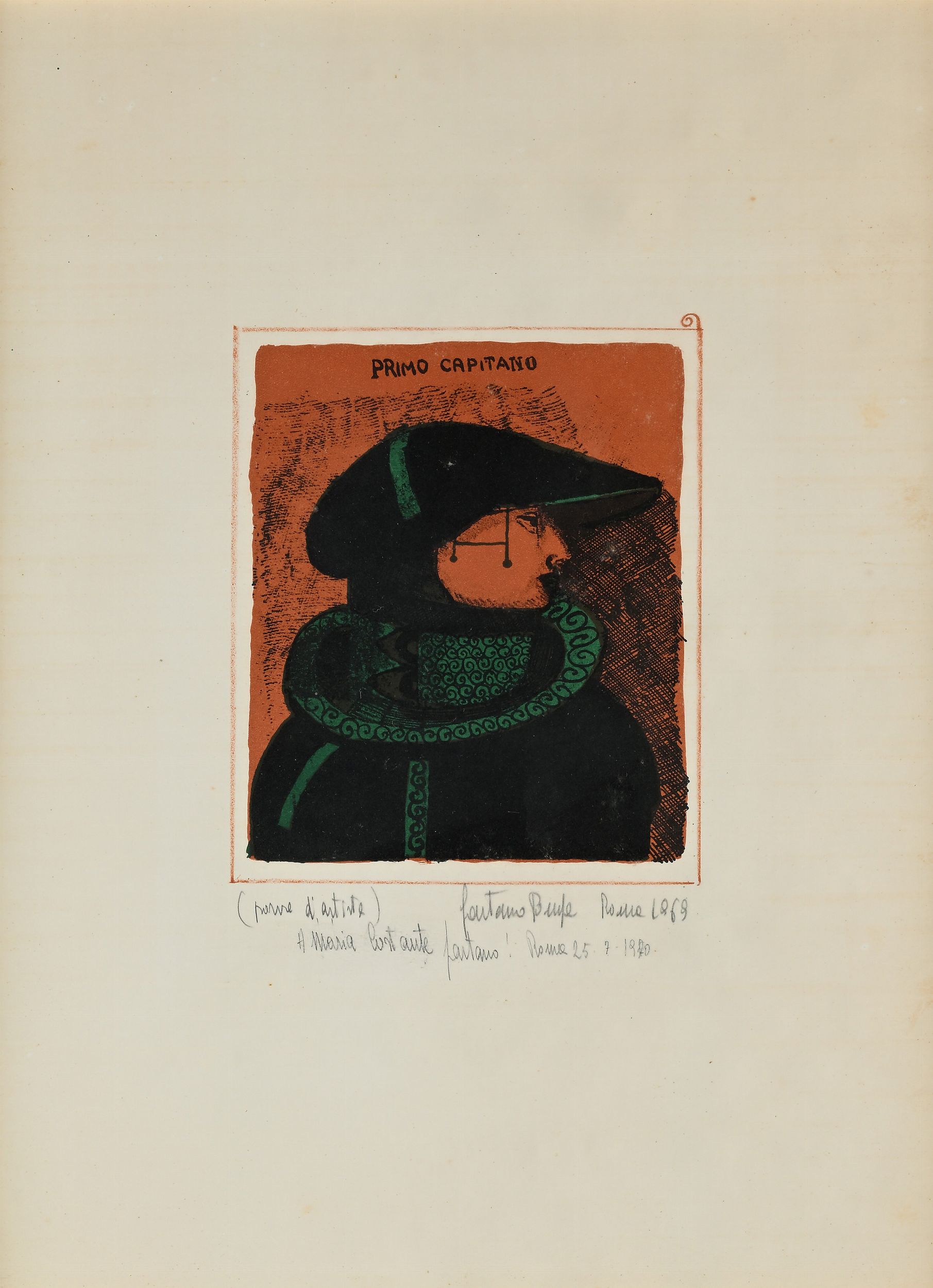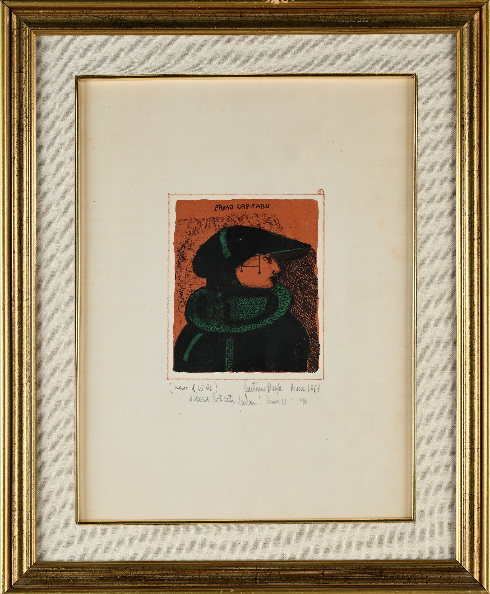 1969 Firma, data, numerazione e dedica 'Gaetano Pompa, Roma 1969, Prova d'Artista, A Maria Costante Gaetano, Roma 25.7.1970