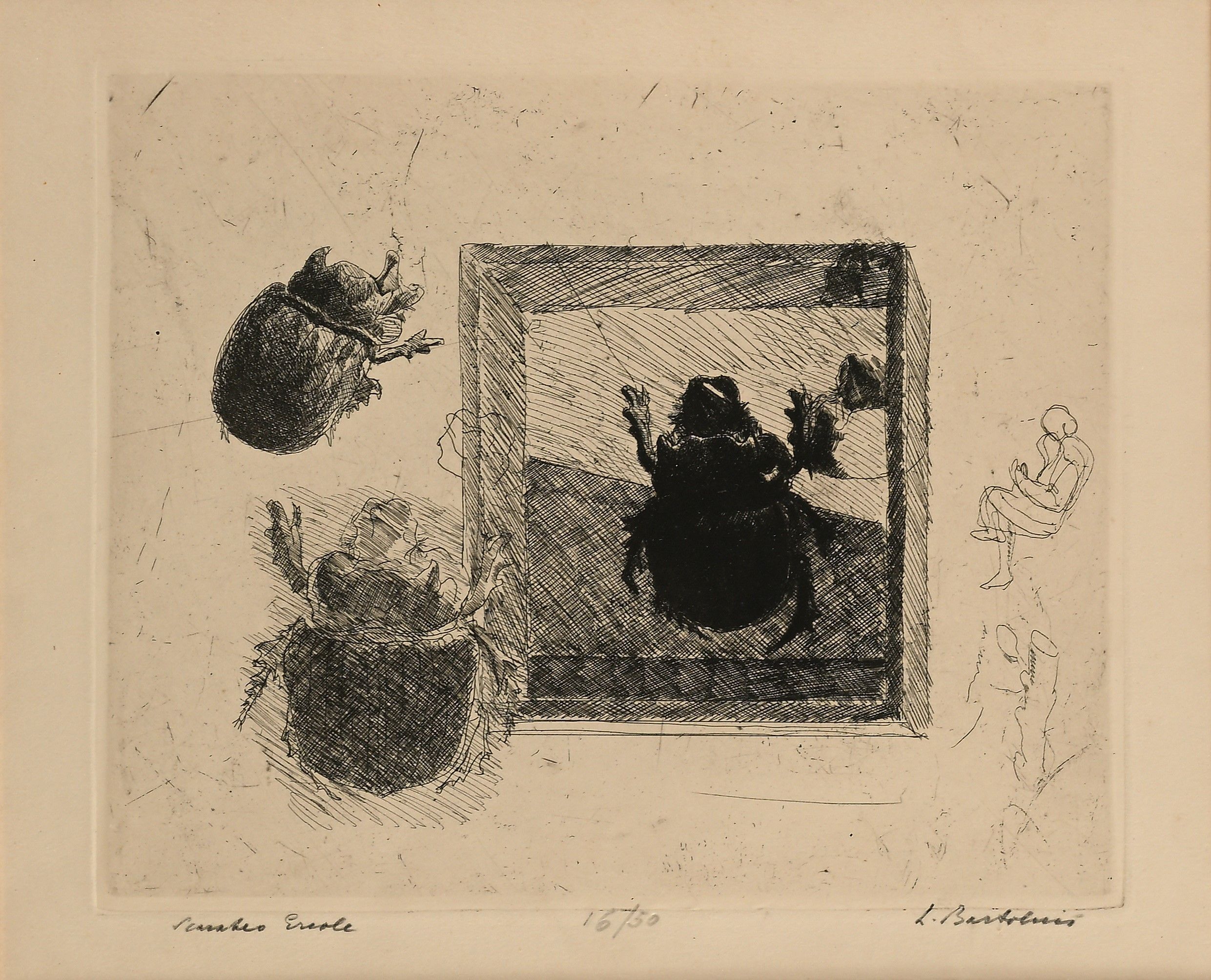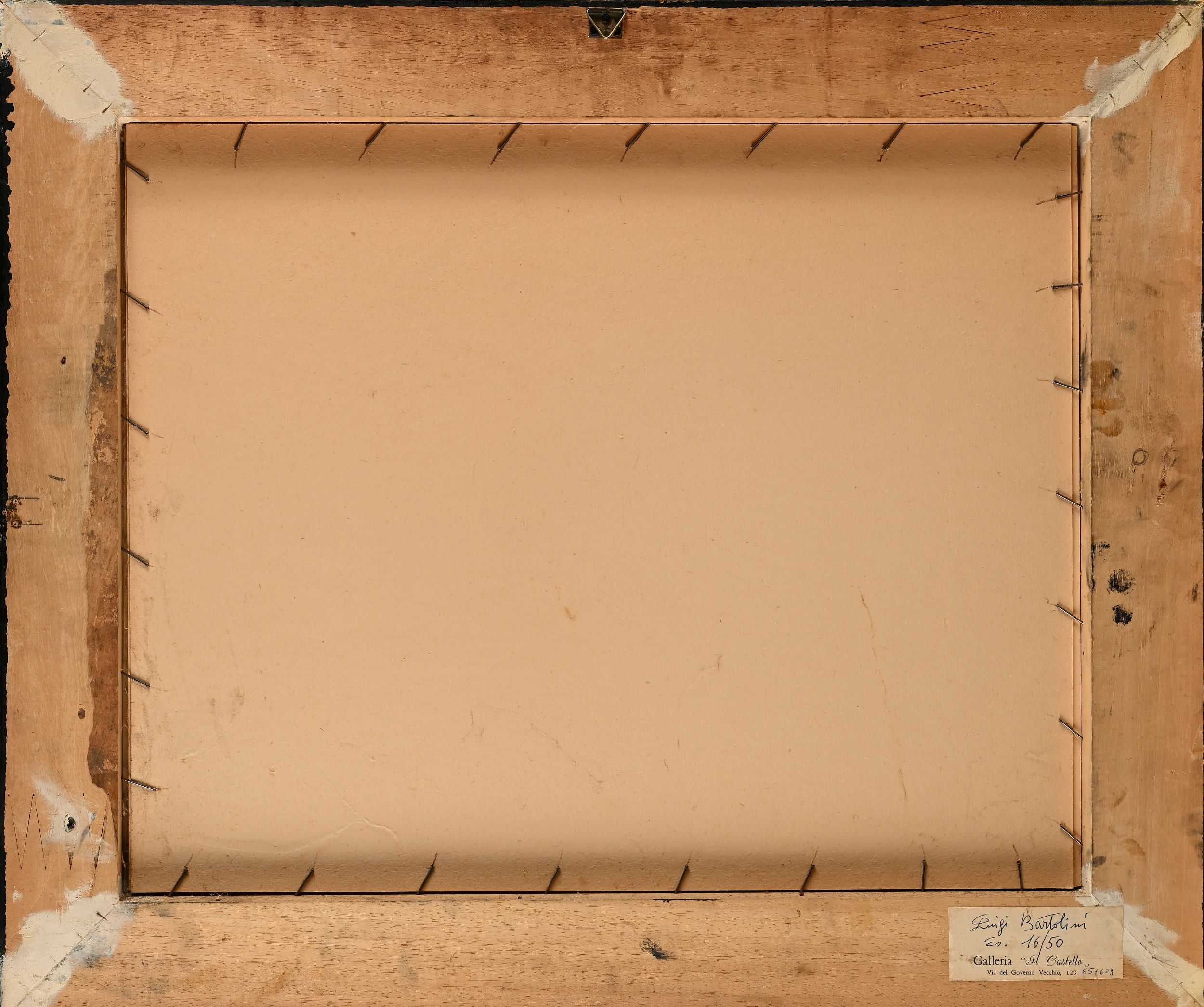 1934/35 Firma, titolo e numerazione 'Luigi Bartolini, 16/50, Scarabeo Ercole'. Al verso etichetta della Galleria Il Castello