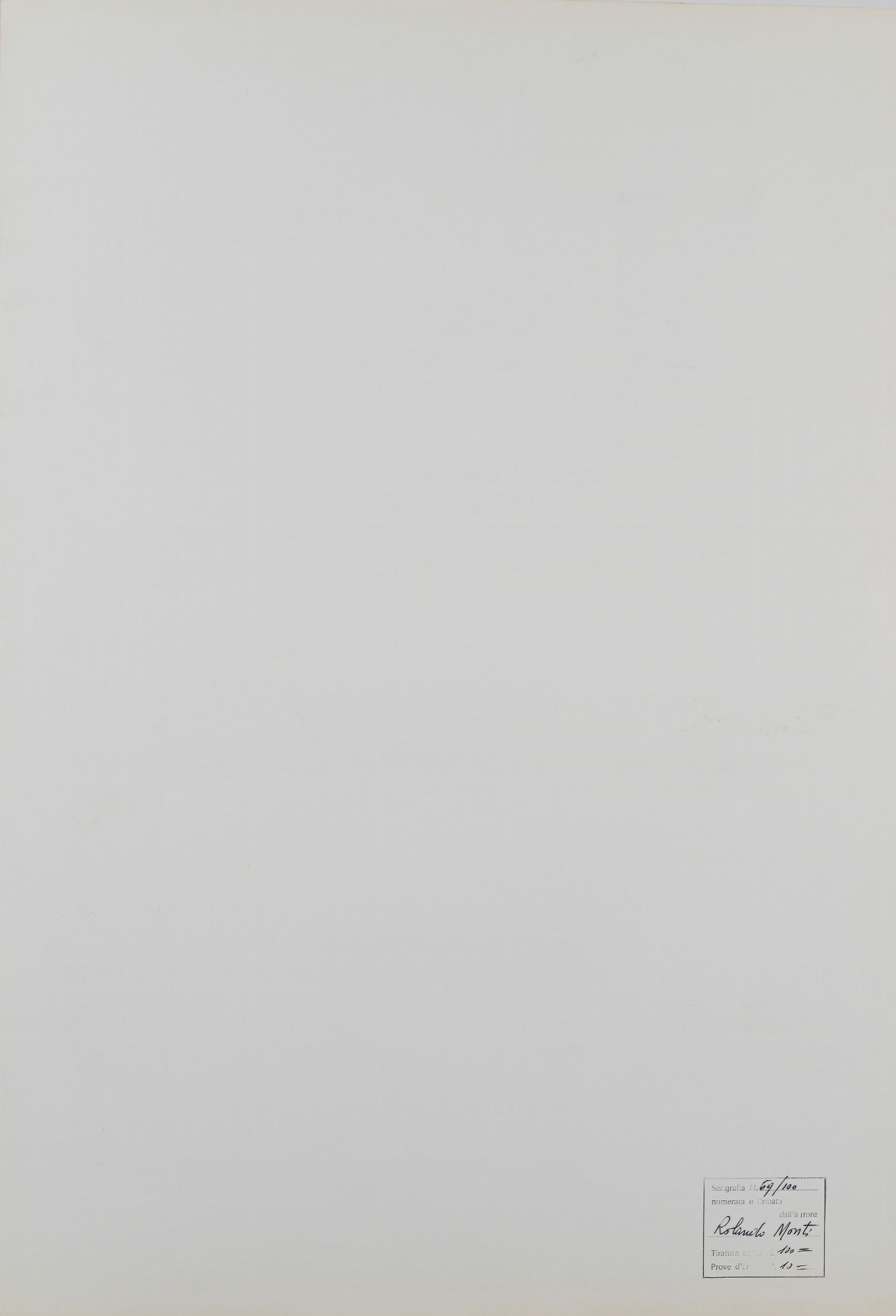 Firma e numerazione 'R.Monti, 69/100'