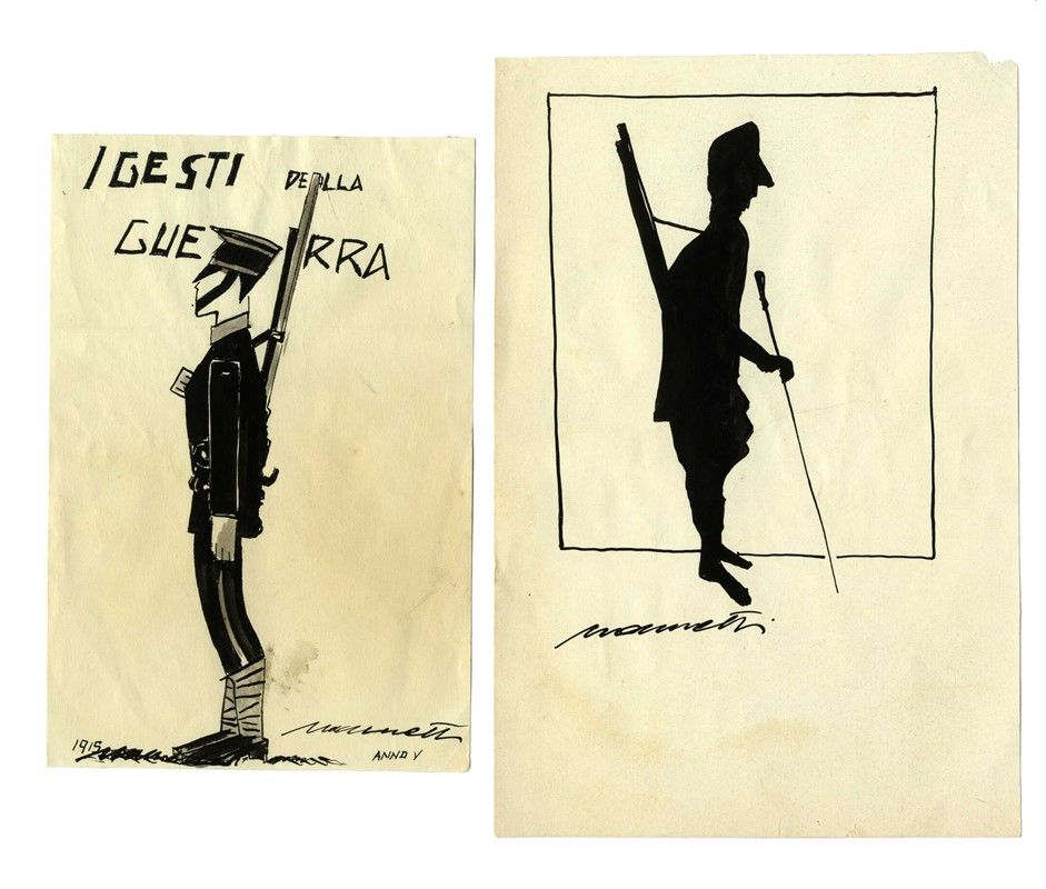 Raccolta di 21 penne e inchiostro di china e acquerelli su carta leggera. mm 165/300x110/210. Nove di loro recano la firma di Nannetti N., Tre hanno firme poco leggibili ed il resto risulta non firmato. Data apposta su sei opere.