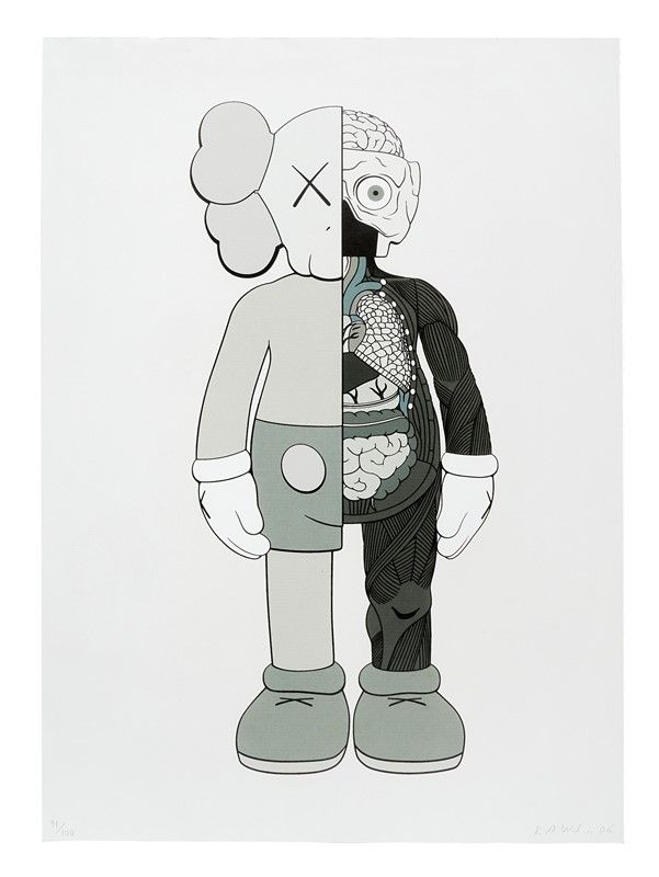 Offset. mm 700x500 cad. Tutti con iscritto "Kaws" e la data di realizzo a matita in basso a destra.