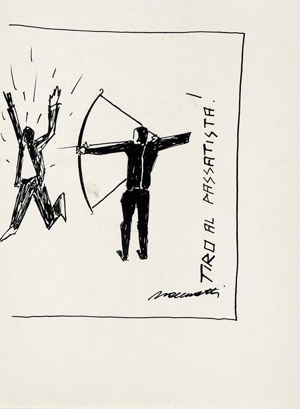 Tecniche miste varie su fogli di misure varie. Tutti firmati. Tra questi disegni, sono presenti: "Tiro al passatista!" e "PiVolo aperitivo".